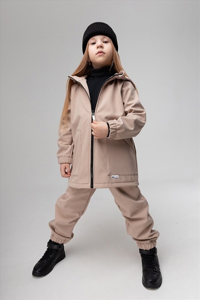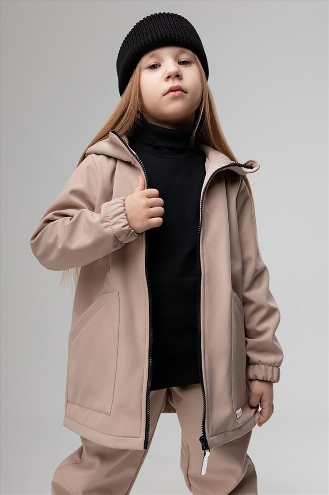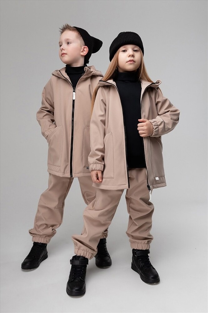 Демисезонный ветронепроницаемый и дышащий костюм из материала softshell. Водо- и ветронепроницаемый материал softshell гарантирует комфорт в такую изменчивую весеннюю и осеннюю погоду. На куртке накладные карманы, на молнии светоотражающий пуллер, защитная планка, несъемный капюшон. Брюки - джоггеры, пояс - эластичная резинка, низ изделия - манжеты. Комфортная температура Softshell от + 5 до +15 С, но всё зависит от индивидуальных особенностей теплообмена тела ребенка. Состав: софтшелл 100% полиэстер