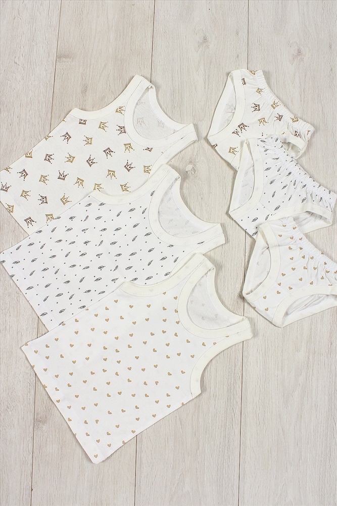 Состав: 100% хлопок Модель: Комплект майка + трусы 3шт. для девочки арт. КПЛ-МТР-Д Тип товара: комплект белья Материал: кулирка | кулирка Бренд: Матвейка Особенности: на резинке Рисунок: разное Рукав: без рукава Сезонность: лето | осень | весна | зима Силуэт: прямой Стиль: повседневный Комплект трусиков и маечек для девочки 3 штуки. Из нежной трикотажной ткани - кулирки с мелким рисунком. Ткань гипоалергенна, воздухопроницаема хорошо впитывает влагу. Вашему ребенку будет комфортно. Таблица размеров и веса