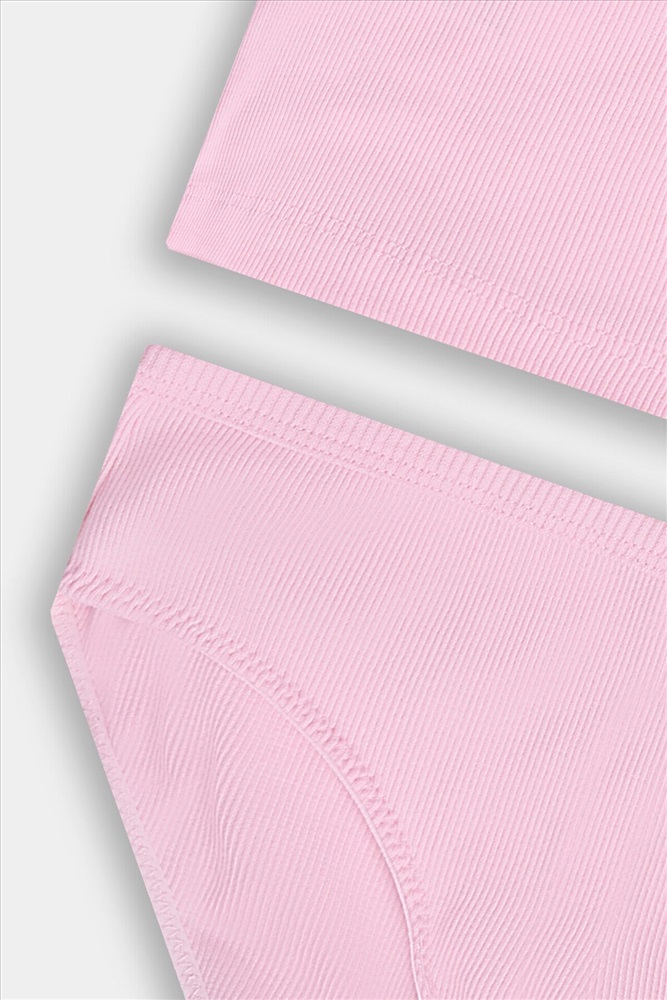 Майка прилегающего силуэта без рукавов. Длина до середины бедер. Горловина круглая. Проймы и горловина окантованы бейкой из основного полотна. Низ изделия обработан на 2х игольной плоскошовной машине. Трусы для девочек. Деталь переда цельнокроеная. Ластовица из трикотажного кулирного полотна. Задняя деталь цельнокроенная. Верхний срез трусов обработан окантовкой из основного полотна с эластичной тканой жилкой внутри. Нижние срезы трусов обработаны тканой жилкой
