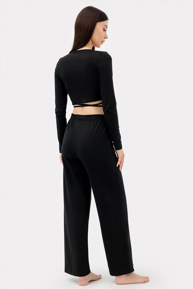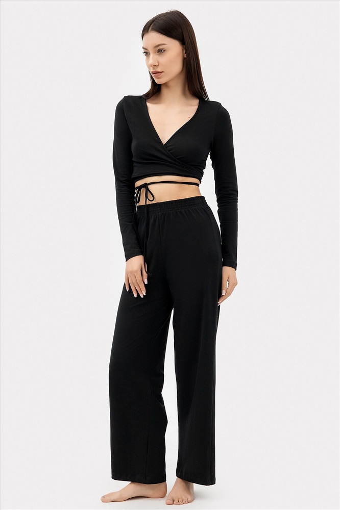 ID товара: 990498 Состав: 95% Хлопок; 5% Эластан Сезон: Весна/Лето Рукав: длинные Вид застежки: Завязки Тип карманов: Без карманов Декоративные элементы: Без элементов Утеплитель: Без утепления Покрой: Прилегающий Уход: Деликатная стирка при 30 градусах Модель брюк: Прямые Фактура материала: Кулирное полотно Страна бренда: Беларусь Страна производства: Белоруссия Джемпер женский прилегающего силуэта. Полочка состоит из двух частей, на запах, на завязках. Рукава длинные, втачные. Низ рукавов обработан швом в подгибку. Горловина и детали полочки обработаны в чистый край. Низ обработан бейкой. Брюки с посадкой на талии свободного силуэта. Пояс цельнокроеный с резиной внутри. Низ изделия застрочен швом в подгибку. Комментарии к товару