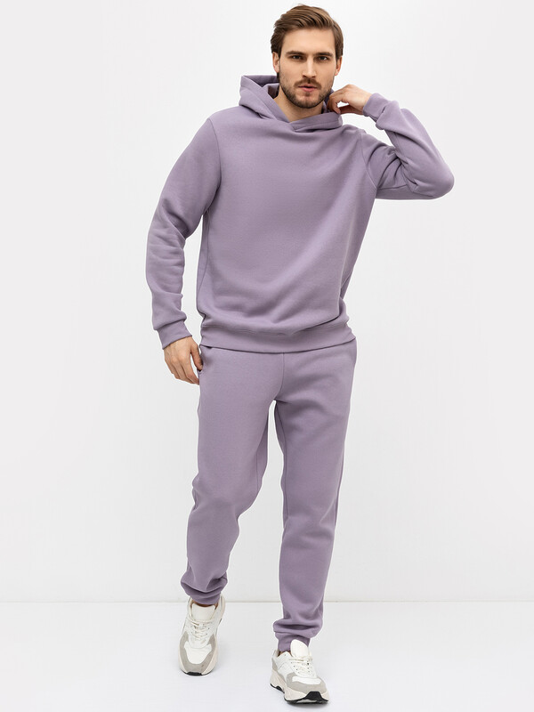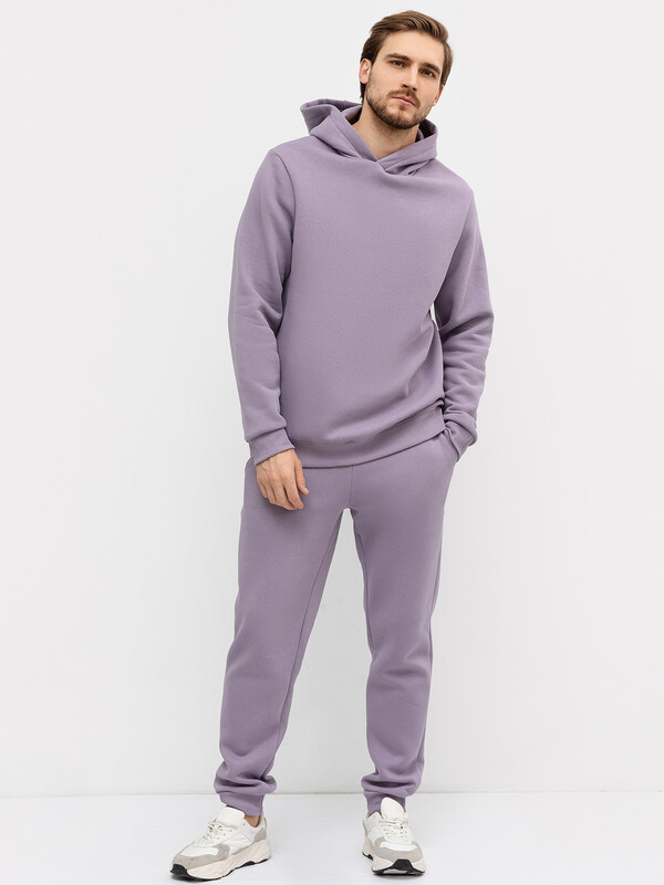 Комплект из трикотажного футера с теплым подчесом. Худи свободного силуэта с капюшоном, который по переду идет внахлест, с круглой горловиной и длинными рукавами на манжетах. Слегка спущенная линия плеча и расширенная пройма дарят полную свободу движений. Брюки зауженого силуэта, с регулировочным шнуром в поясе, с карманами и манжетами. Стильный комплект!