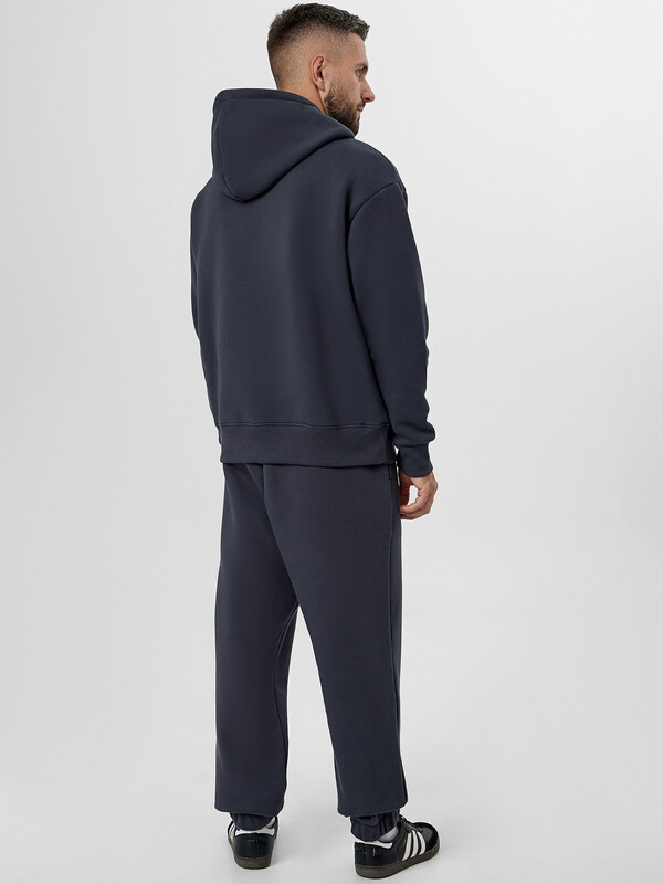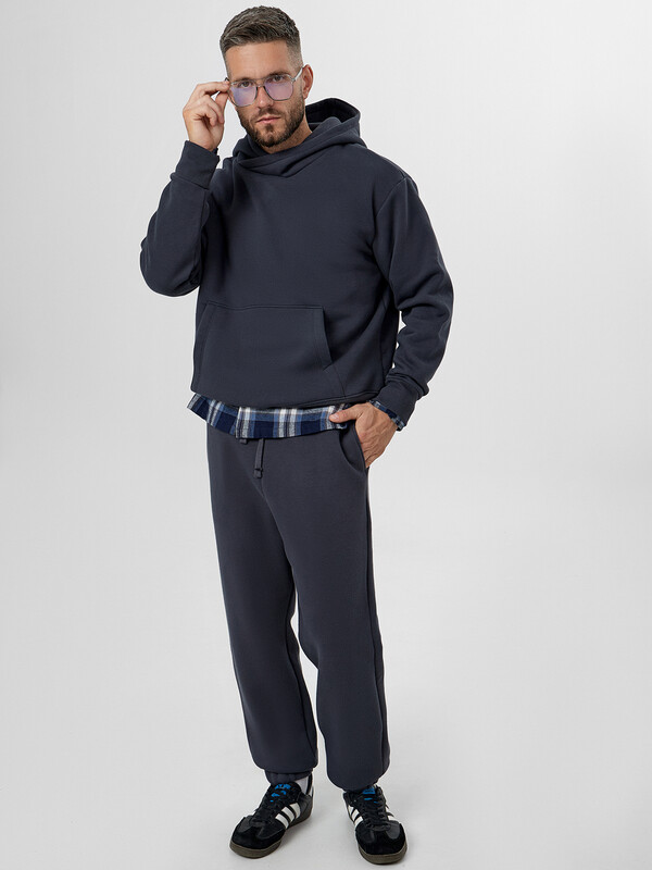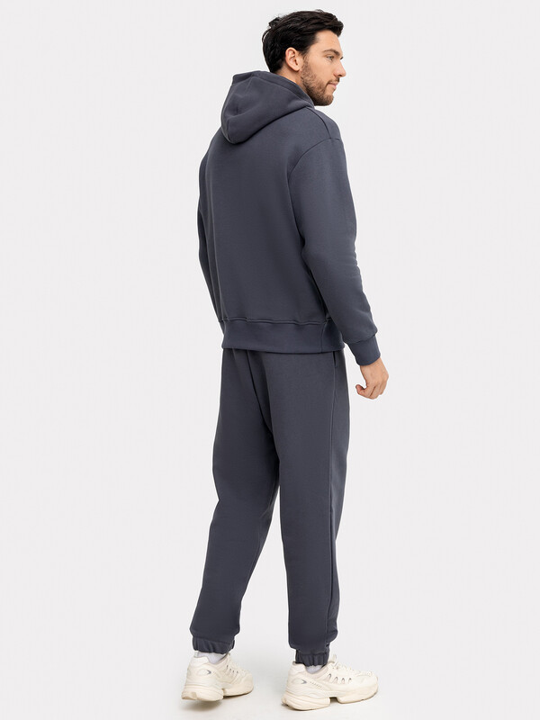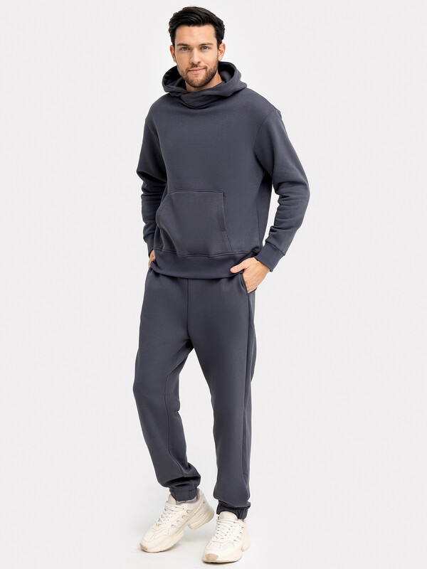 На передней детале настрочен карман кенгуру. Рукава длинные втачные со спущенной линией плеча. По низу рукавов и анорака притачены манжеты и пояс из рибаны. Брюки свободного силуэта. Посадка средняя. Сидение немного спущено. В боковых швах обработаны карманы. Подкладка карманов из кулирки. Пояс отрезной с эластичной тесьмой. По переду в поясе пробиты петли и протянут шнур. Низ брюк обработан вподгибку с эластичной тесьмой. Карман на задней детали брюк - по заданию. 65 % хлопок, 35% полиэстер Вид застежки: без застежки Вырез горловины: округлый Декоративные элементы: без элементов Модель брюк: джоггеры Назначение: повседневная Особенности модели: нет Покрой: свободный Пол: Мужской Предмет: Костюмы Тип карманов: в шве Тип посадки: средняя Тип рукава: длинные Утеплитель: начес Уход за вещами: деликатная стирка при 30 градусах длина брючин по внутр. шву, см: 69,5 длина изделия по боковому шву - низ, см: 104,5 длина изделия по спинке, см.: 67,5 фактура материала: футер с подчесом ширина брючин - низ, см: 14,5 Комментарии к товару
