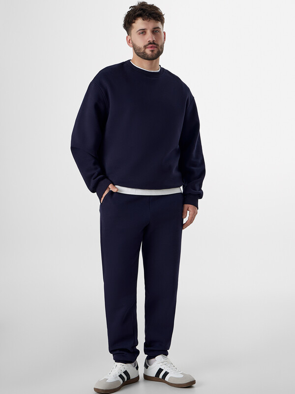 Комплект изготовлен из трикотажного полотна футера 3х нитки с подчесом 65% хлопок, 35%пэ, 280 гр/м2 (F3-034.01.280), рибана 2*2 97%хб, 3%эластан, 320г/м2 (R22-049.01.320 )