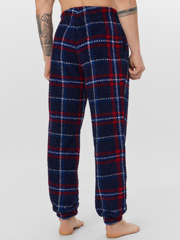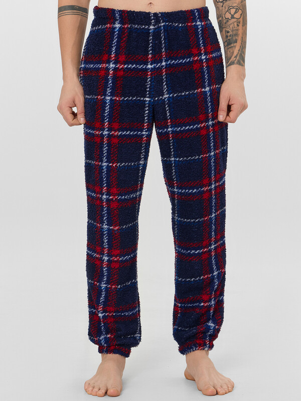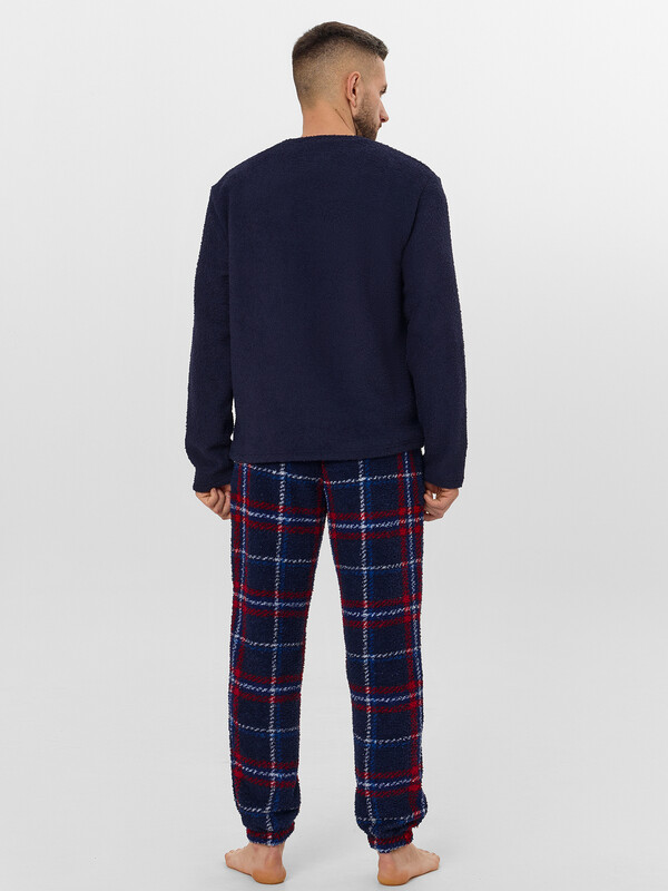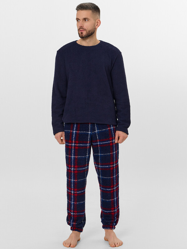 Комплект состоит из джемпера и брюк. Комплект мужской из трикотажного полотна с меховым ворсом 280 гр/м2. Джемпер свободного силуэта. Горловина округлой формы, обработана обтачкой из основного полотна. Рукава втачные. Нижние срезы обработны швом в подгибку на двухигольной плоскошовной машине. Брюки свободного силуэта, с классической линией талии. Пояс цельнокроенный с эластичной тесьмой внутри 30 мм. В боковых швах обработаны карманы. Нижние срезы брюк обработаны швом в подгибку с эластичной тесьмой внутри 30 мм.