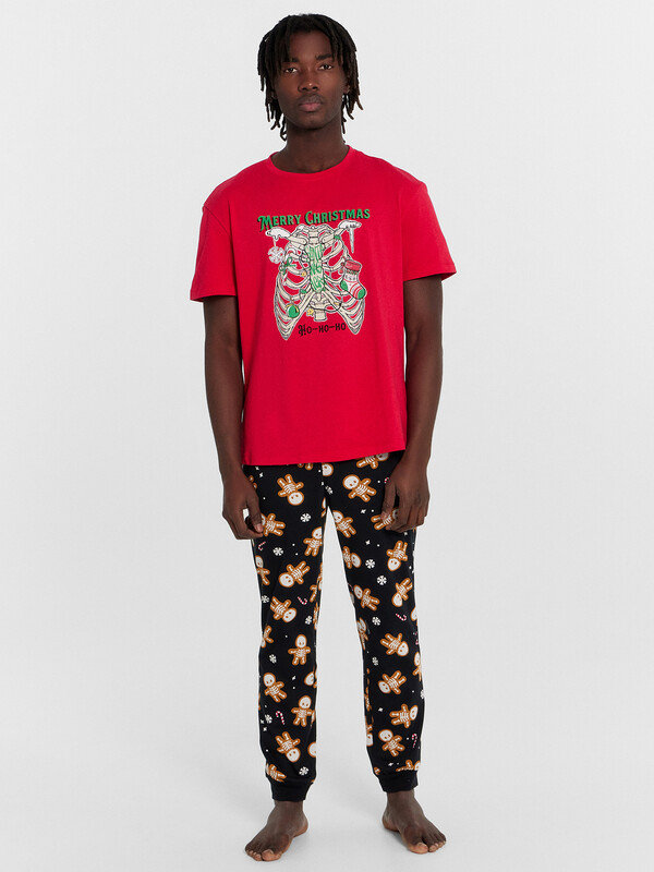 Комплект изготовлен из трикотажного полотна кулирка. Футболка прямая свободная. Горловина округлой формы обработана обтачкой из основного полотна. Рукава втачные короткие, плечо спущено. Нижний срез футболки и рукавов обработан швом вподгибку. Брюки полуприлегающего силуэта. Пояс отрезной с эластичной тесьмой внутри. По переду пояса пробиты петли и втянута тесьма хб. В боковых швах обработаны карманы. По низу брюк отрезные манжеты из рибаны 99% хлопок; 1% эластан Комментарии к товару