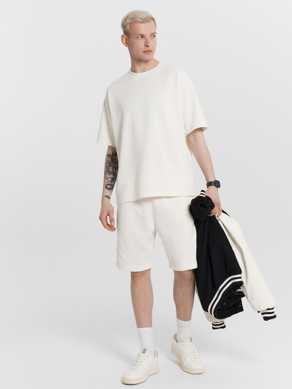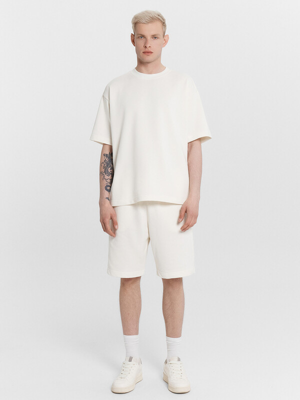 Производитель: Mark Formelle Однотонный мужской комплект из легкого хлопкового футера. Шорты прямые и свободные, длиной выше колена, с боковыми карманами и накладным сзади. Внутри пояса – эластичная тесьма и шнурок-завязка, который позволяет регулировать ширину в талии. Футболка прямая и свободная, со спущенной линией плеча и круглым вырезом. Рекомендуем!