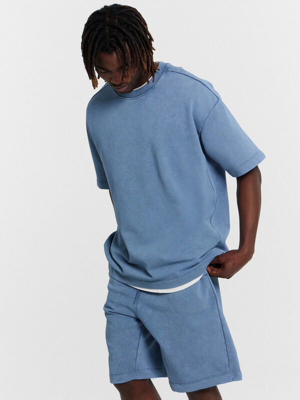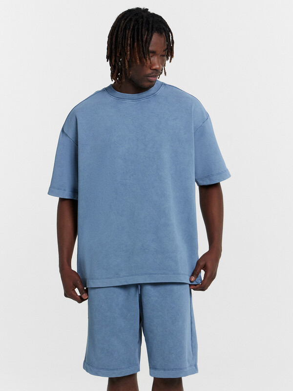 Однотонный мужской комплект из легкого хлопкового футера. Шорты прямые и свободные, длиной выше колена, с боковыми карманами и накладным сзади. Внутри пояса – эластичная тесьма и шнурок-завязка, который позволяет регулировать ширину в талии. Футболка прямая и свободная, со спущенной линией плеча и круглым вырезом. Рекомендуем!