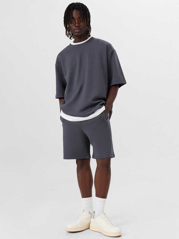 Производитель: Mark Formelle Мужской комплект станет отличным выбором для комфортного и стильного повседневного образа. Футболка прямого свободного кроя с круглой горловиной и слегка спущенной линией плеча добавляет расслабленный вид. Короткие рукава и обработка нижних срезов швом вподгибку обеспечивают аккуратный и завершенный вид. Шорты прямого свободного кроя длиной до колен создают удобство в движении, а эластичный пояс на кулиске позволяет подогнать посадку под индивидуальные предпочтения. Боковые карманы добавляют практичности и удобства. Изделие выполнено из интерлока — двойного трикотажа, известного своей прочностью, мягкостью и приятной текстурой. Он обладает высокой воздухопроницаемостью, эластичностью и долго сохраняет форму, не растягиваясь и не деформируясь. Этот материал обеспечивает комфорт в течение всего дня и идеально подходит для одежды, которая требует легкости и долговечности. Такой комплект идеально подходит для отдыха дома, прогулок или занятий спортом, сочетая функциональность и стиль. Комфортный и универсальный выбор для любого дня.