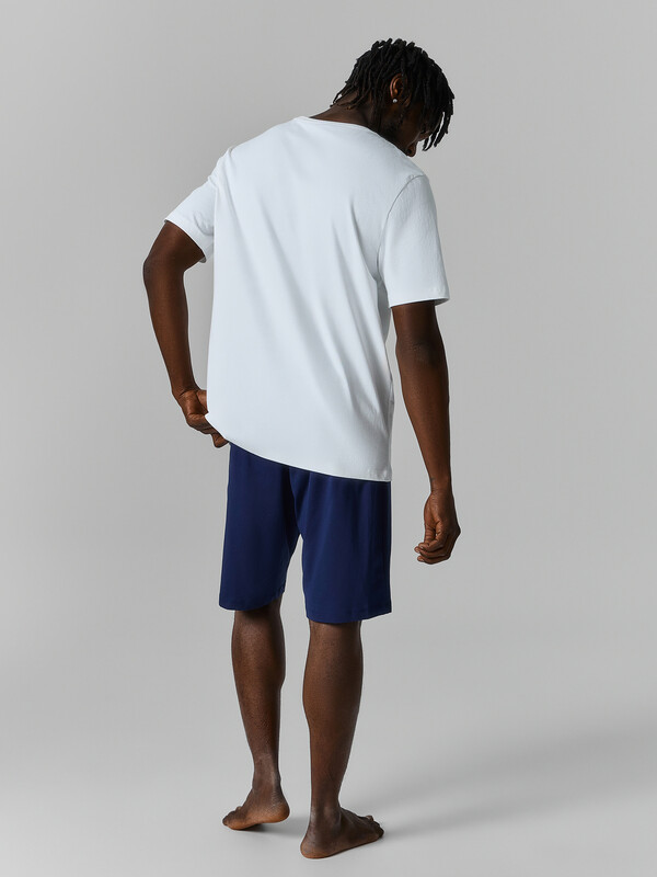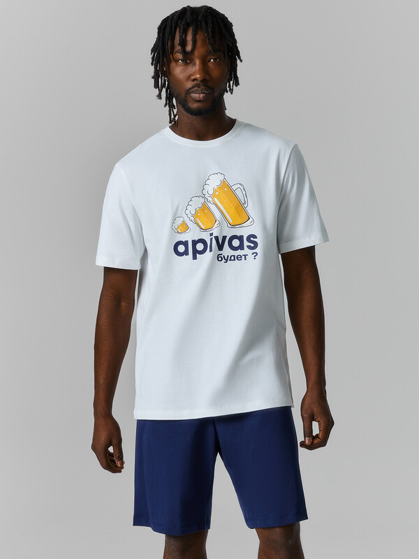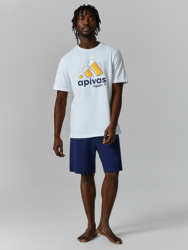 Мужская пижама из хлопка — это идеальный комплект для комфортного сна и отдыха. В набор входит футболка прямого силуэта и прямые шорты. Футболка с круглой горловиной и короткими рукавами обеспечивает удобство и свободу движений. Горловина обработана эластичной резинкой, которая хорошо держит форму.
