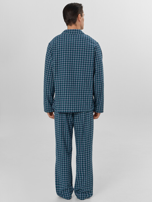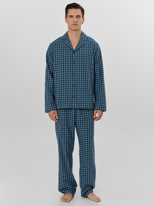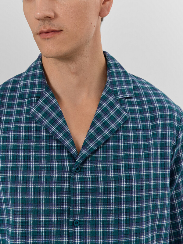 Доминантой дизайна выступает стильная клетка, а тонкое сочетание с полоской придает комплекту особый шарм и визуальную глубину. Мягкая дышащая ткань обеспечивает идеальный микроклимат, делая этот комплект прекрасным выбором для расслабленного вечера или полноценного ночного отдыха в прохладный сезон.