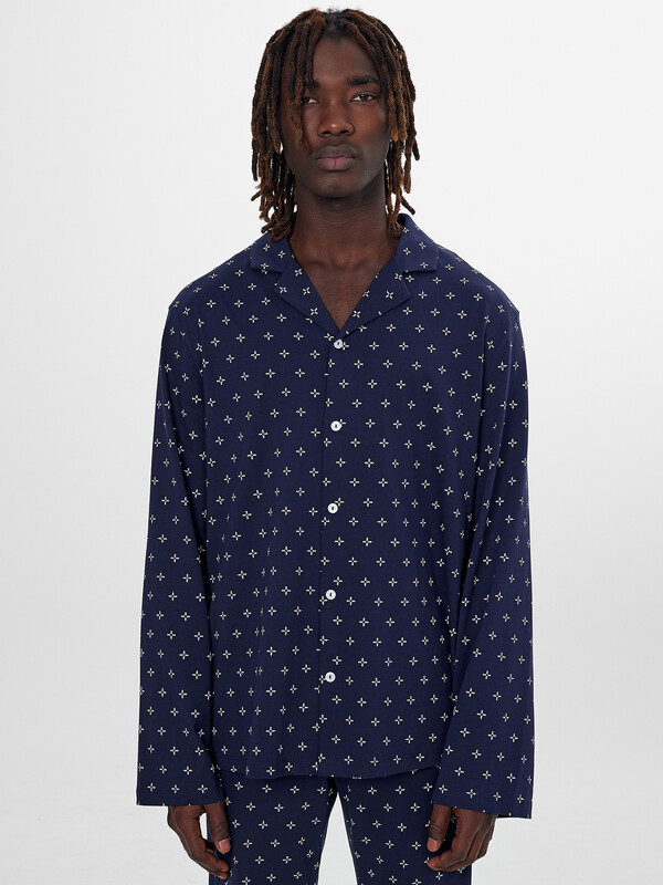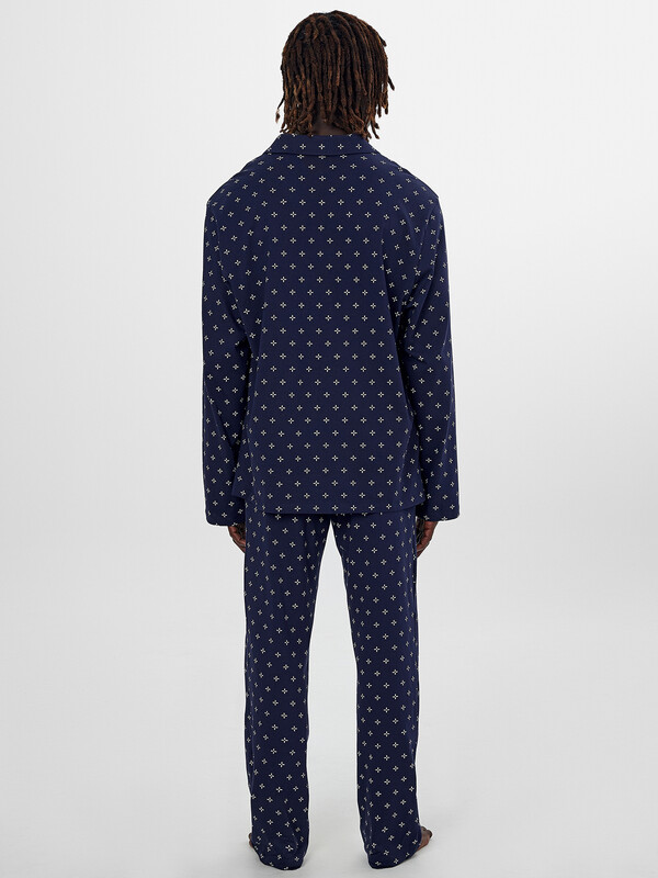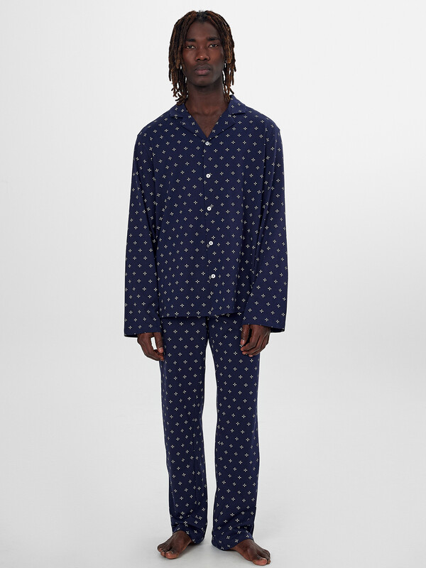 Комплект выполнен из трикотажного полотна кулирки. Сорочка прямого силуэта, свободная. Рукава втачные длинные, линия плеча слегка спущена. Горловина V-образной формы с отложным воротником. Низ изделия и низ рукавов застрочен швом в подгибку. Брюки прямые, свободные. Пояс цельнокроеный с эластичной тесьмой внутри. В боковых швах обработаны карманы. Низ изделия застрочен швом в подгибку. 100% хлопок Комментарии к товару