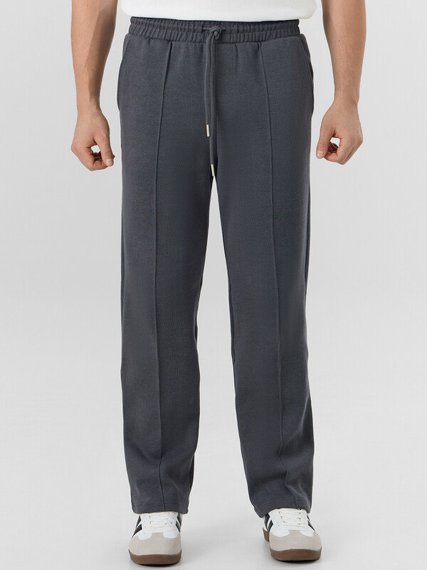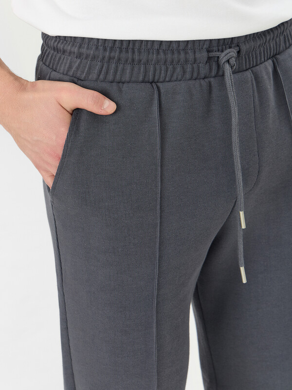 Брюки зауженные книзу, посадка средняя. По передним частям брюк застроченные стрелки. На передней половинке слева отделочная строчка - имитация гульфика.