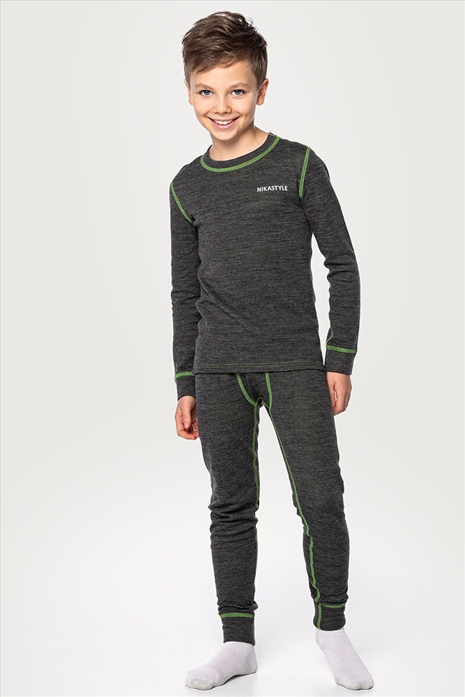 ID товара: 1125570 Состав: Пан-43%, хлопок-39%, шерсть-18% Сезон: Осень/Зима Подкладка: без подкладки Утеплитель: без утеплителя Материал верха: Общий состав- Пан-43%, хлопок-39%, шерсть-18% Мембрана: Нет Мех опушки: без опушки Температурный режим: До -30°С Страна бренда: Россия Страна производства: Россия Комплект для мальчика ТЕРМО (лонгслив и кальсоны) из двухслойного трикотажного полотна. Внешний слой состоит из шерстяных и акриловых нитей, сохраняющих тепло и выводящих лишнюю влагу. Шерсть мериноса, входящая в состав изделия, очень тонкая, мягкая, не вызывает аллергии, раздражения и не колется. Внутренняя часть выполнена из 100% хлопка. Легкий, мягкий и приятный на ощупь комплект хорошо сохраняет тепло. Не сковывает движения и выводит влагу.Функционал: • плоские швы делают такое белье максимально незаметным под одеждой,• удлиненный низ лонгслива обеспечивает надежную защиту спины от холода при любой активности,• легинсы хорошо садятся по фигуре и крепко держатся благодаря поясу с широкой резинкой.Комплект можно носить под верхнюю одежду в холодный период. Подойдет на температуру до -30°С при условии соблюдения принципа многослойности. Рекомендуем приобрести комплектом аксессуары, обувь и другие вещи из капсулы в карточке товара, которые отлично сочетаются с изделиями коллекции. Комментарии к товару