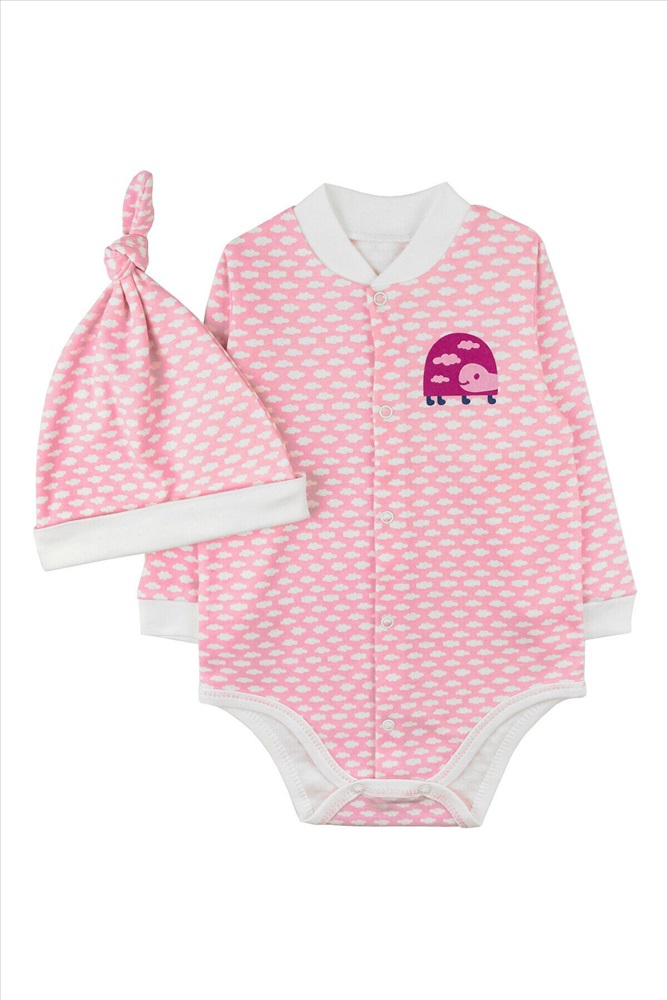 ID товара: 723960 Состав: 100% Хлопок Сезон: Осень/Зима Фасон: Полуприлегающий Рукав: Длинные Вид застежки: Кнопки Рисунок: Фантазийный Основная ткань: Интерлок Страна бренда: Россия Страна производства: Россия Комплект (полукомбинезон+чепчик) Комментарии к товару