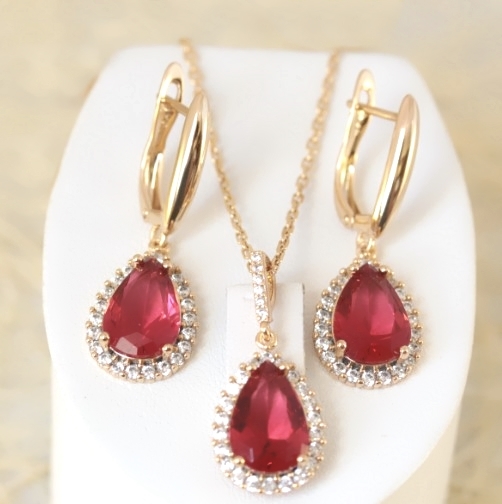 Комплект с золотым покрытием. Материал: бижутерный сплав. Покрытие: золото 18К. Вставка: фианиты Застёжка: английский замок. Размер серьги: 3 см. Размер кулона: 2,5 см. (с ушком) Длина цепочки: 40-45 см. (с увеличителем)