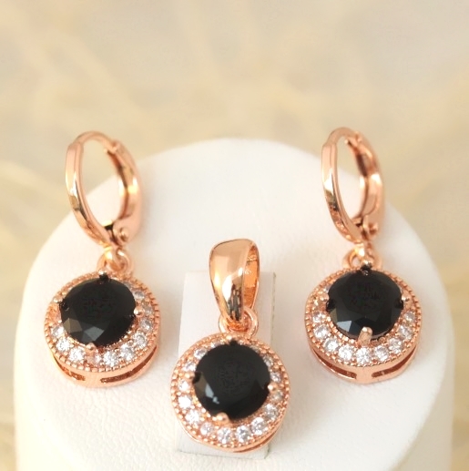 Комплект с золотым покрытием. Материал: бижутерный сплав. Покрытие: золото 18К. Вставка:  фианиты. Застёжка: круглый замок. Размер серьги: 2,2 см. Размер кулона: 2 см. (с ушком)