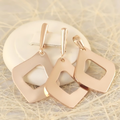 Комплект с золотым покрытием. Материал: бижутерный сплав. Покрытие: золото 18К. Вставка:  без вставок. Застёжка: английский замок. Размер серьги: 4,3 см. Размер кулона: 3,5 см. (с ушком)