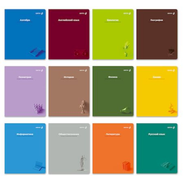 Комплект из 12 предметных тетрадей . А5 формата, 48 листов предназначена для учащихся средних и старших классов. Внутренний блок изготовлен из качественной офсетной бумаги плотностью 60 г/кв. м, 90% белизны.