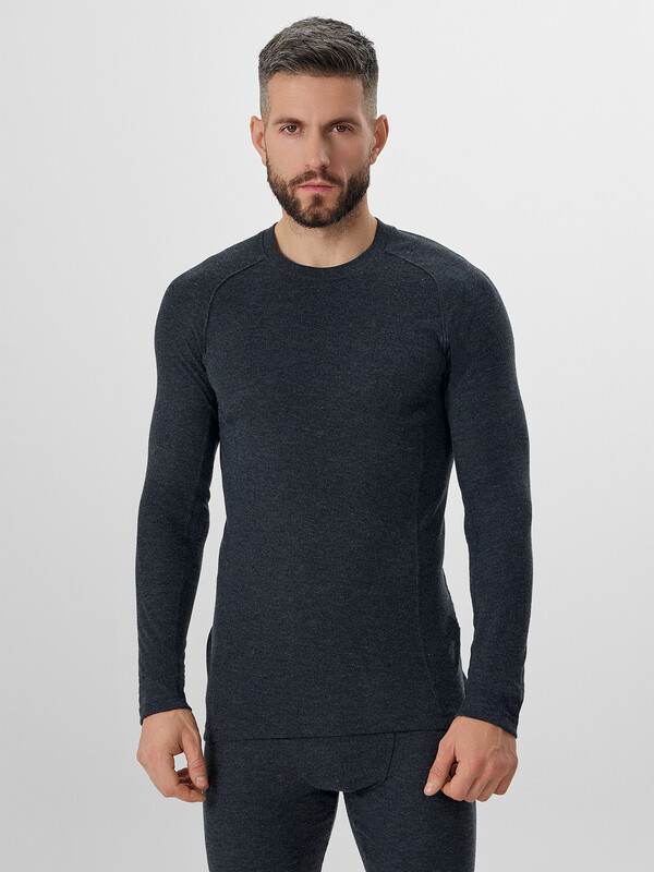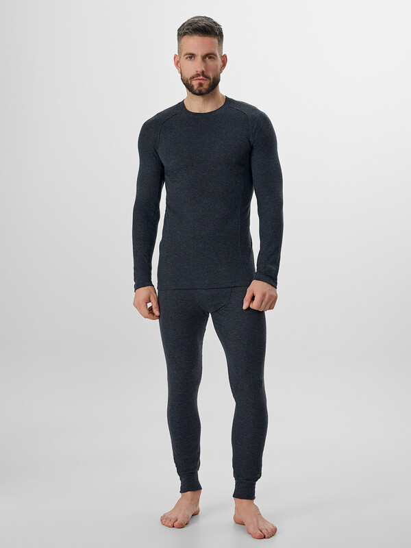 Комплект выполнен из трикотажного полотна рибана "термо", кулирка. Фуфайка прилегающего силуэта. Горловина V-образной формы, обработана обтачкой из основного полотна. Рукава 2-хшовные, реглан. Рельефы переда, спинки и рукавов стачены на специальной машине цепного стежка, швом "флэт-лок". Нижние срезы спинки и переда фигурной формы, спинка удлиненная. Нижние срезы фуфайки и рукавов обработаны швом вподгибку, на 2х-игольной плоскошовной машине, с открытым срезом. Кальсоны облегающего силуэта, без боковых швов. Пояс цельнокроеный с эластичной тесьмой внутри. На передней части усилительная планка на подкладке из кулирки. Задняя деталь притачена к передне-задним частям на специальной машине (строчка флэт-лок). Нижние срезы с притачными манжетами. 50% Viloft (вискоза); 50% Trevira (полиэстер) Комментарии к товару