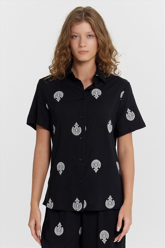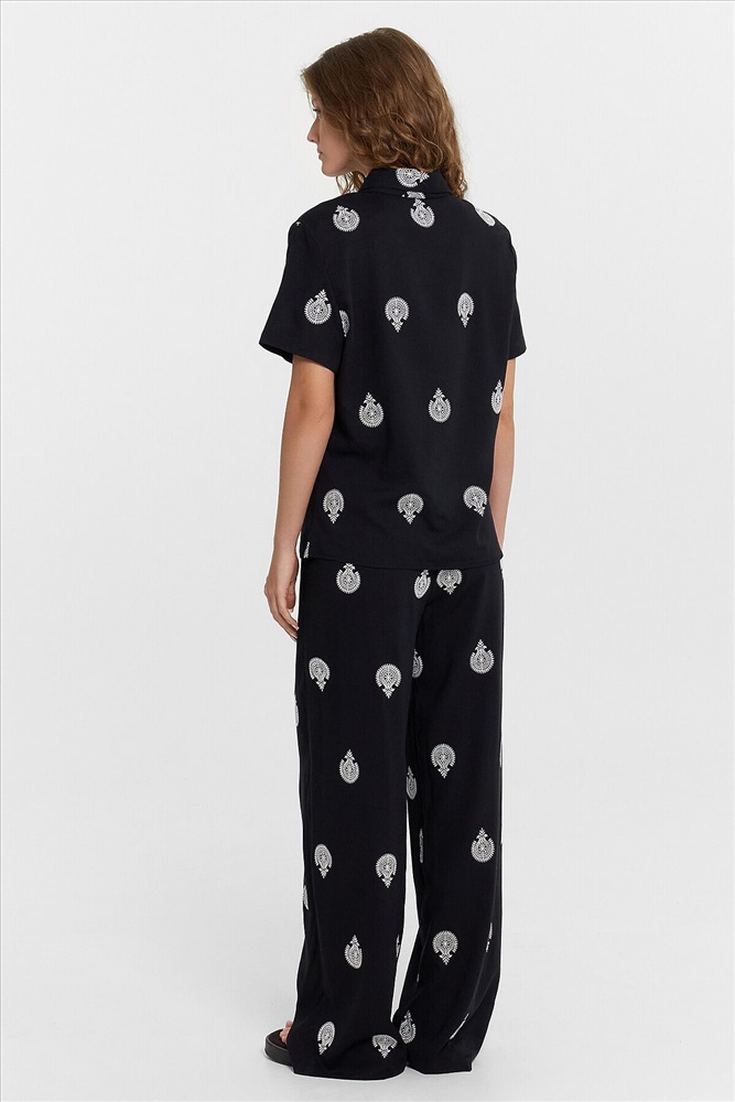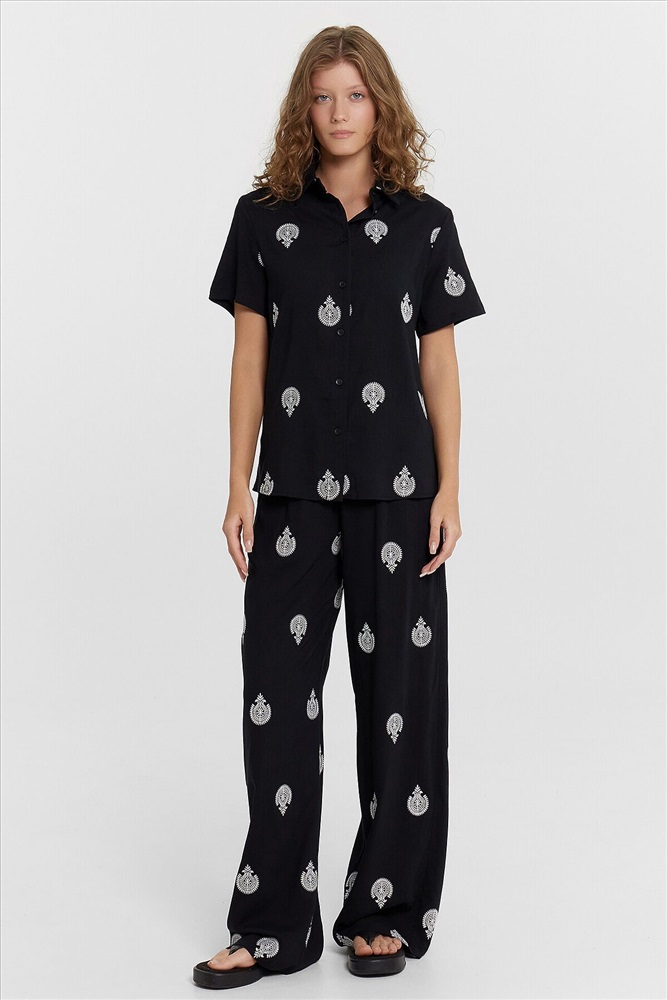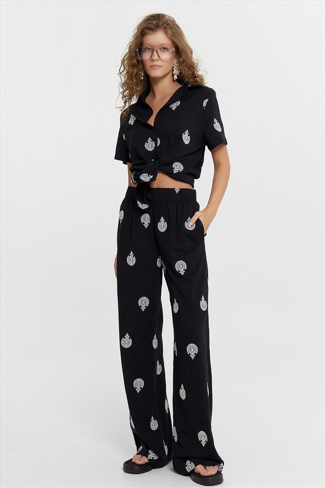 ID товара: 1132227 Состав: 87% Вискоза; 13% Лен Сезон: Весна/Лето Длина: Полная Фасон: Свободный Рукав: короткие Вид застежки: Пуговицы Крой брючин: Широкий Рисунок: Узор Тип карманов: В шве Декоративные элементы: Без элементов Утеплитель: Без утепления Основная ткань: Вискоза Стиль: Повседневный Уход: Деликатная стирка при 30 градусах Модель брюк: Прямые Фактура материала: Тканое полотно Страна бренда: Беларусь Страна производства: Беларусь Женский комплект создан для максимального комфорта в повседневной носке. Натуральные материалы — вискоза и лен — обеспечивают хорошую воздухопроницаемость, приятны к телу и дарят легкость даже в жаркую погоду. Они устойчивы к износу, легко стираются и сохраняют аккуратный вид длительное время. Практичный дизайн делает комплект удобным в любых ситуациях. Свободные прямые брюки со средней посадкой и эластичным поясом обеспечивают комфортную посадку, а боковые карманы добавляют функциональность. Укороченная рубашка полуприлегающего силуэта с застежкой на пуговицы подходит как для повседневных образов, так и для более стильных сочетаний. Этот комплект — идеальный вариант для тех, кто ценит удобство, качество и натуральные материалы. Комментарии к товару