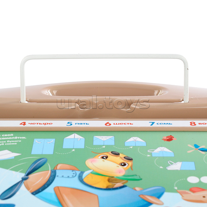 Код: 378810 Штрихкод: 4630111504942 Страна производитель: Россия Размеры упаковки: 85 x 15 x 73 см Количество в коробке: 1 • Размеры столешницы: 73х59 см. • Высота стола: 60 см. • Максимальная нагрузка на стул: 50 кг. • Максимальная нагрузка на стол: 50 кг. • Размеры сиденья: 29х26 см. • Высота до сиденья: 34 см. • Высота по спинке: 61 см. • Изменяемый угол наклона столешницы. • Выдвижная подставка для книг. • Складной металлический каркас. • Стол и стул с подставками для ног. • Мягкое сиденье стула (искусственная замша). • Спинка стула из пластика. • Материал столешницы: фанера. • На столешницу нанесена самоклеящаяся ламинированная бумага. • По краям столешницы пластиковый органайзер. • Ножки стола и стула с пластиковыми накладками от царапин. • На столешнице можно рисовать маркером на водной основе. • Возрастная группа: 3-7 лет. Комментарии к товару