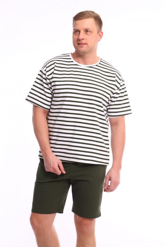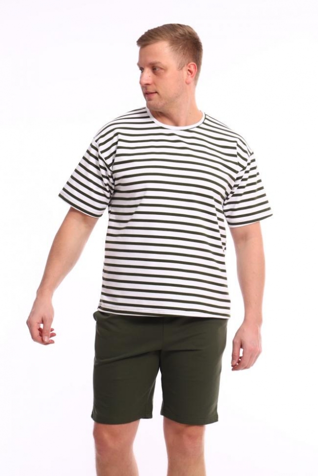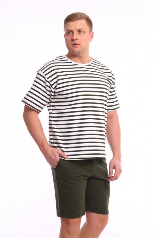 Комплект состоит из футболки оверсайз и шорт. Футболка свободного кроя, с коротким рукавом, круглым вырезом горловины. Шорты прямого кроя с карманами, на поясе шнур для регулировки .
