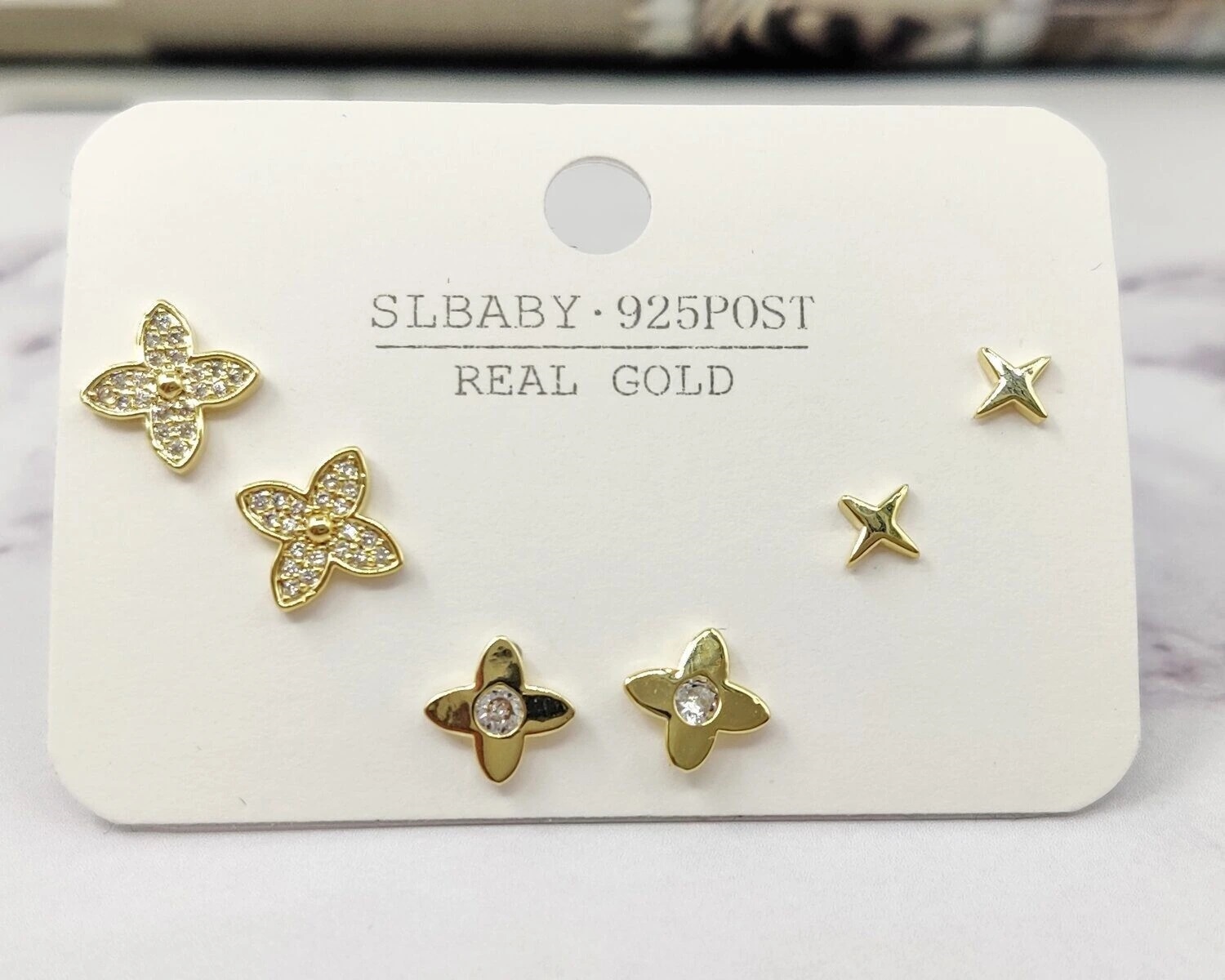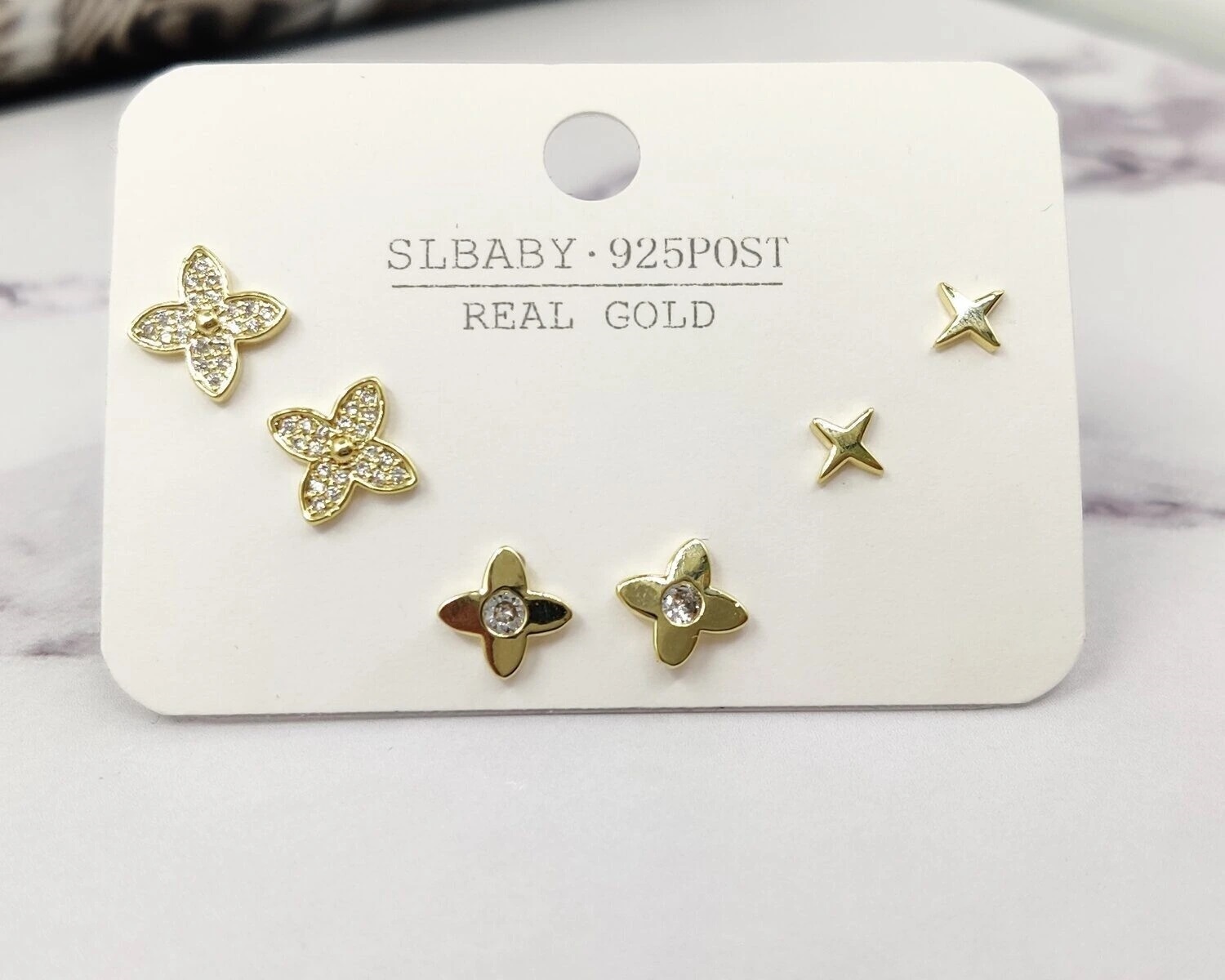 В комплект входят 6 гвоздиков которые можно одевать ассиметрично,на одно ухо, или сочетать между собой в зависимости от Вашего образа.