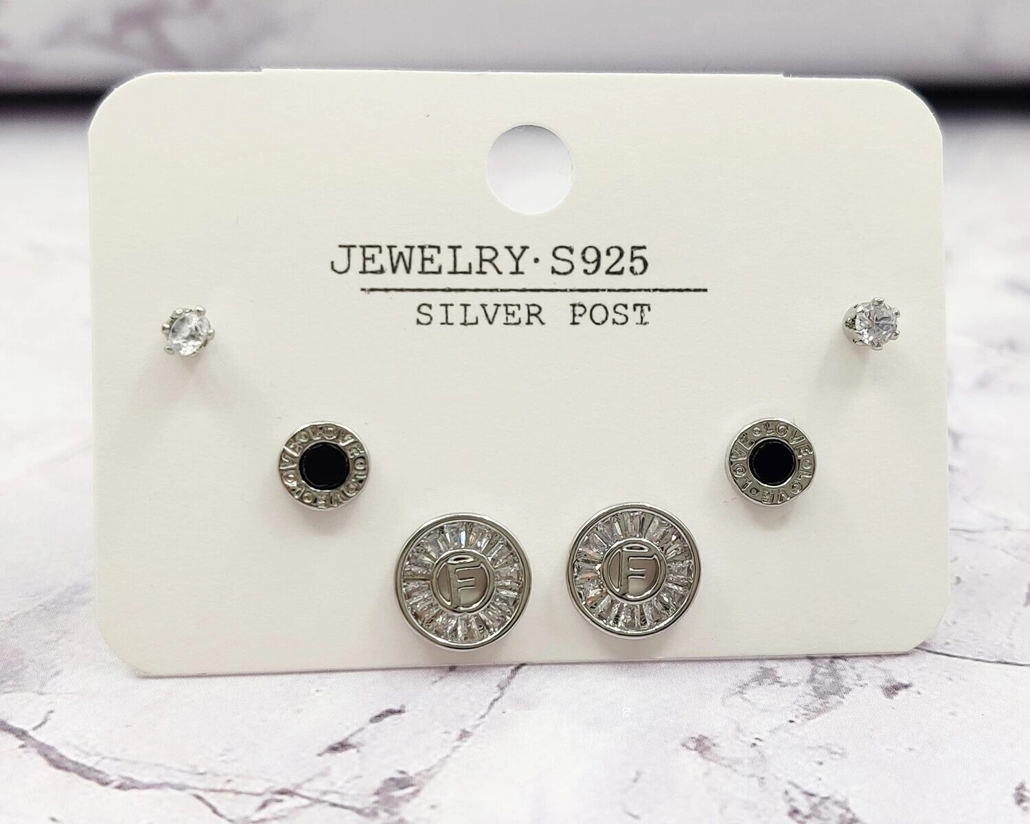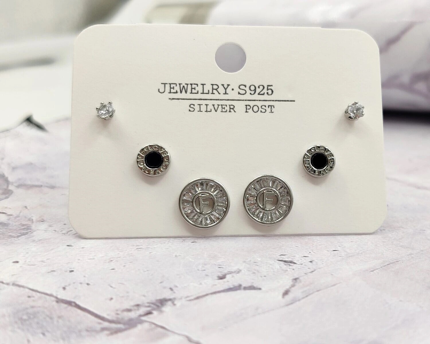 В комплект входят 6 гвоздиков которые можно одевать ассиметрично,на одно ухо, или сочетать между собой в зависимости от Вашего образа.