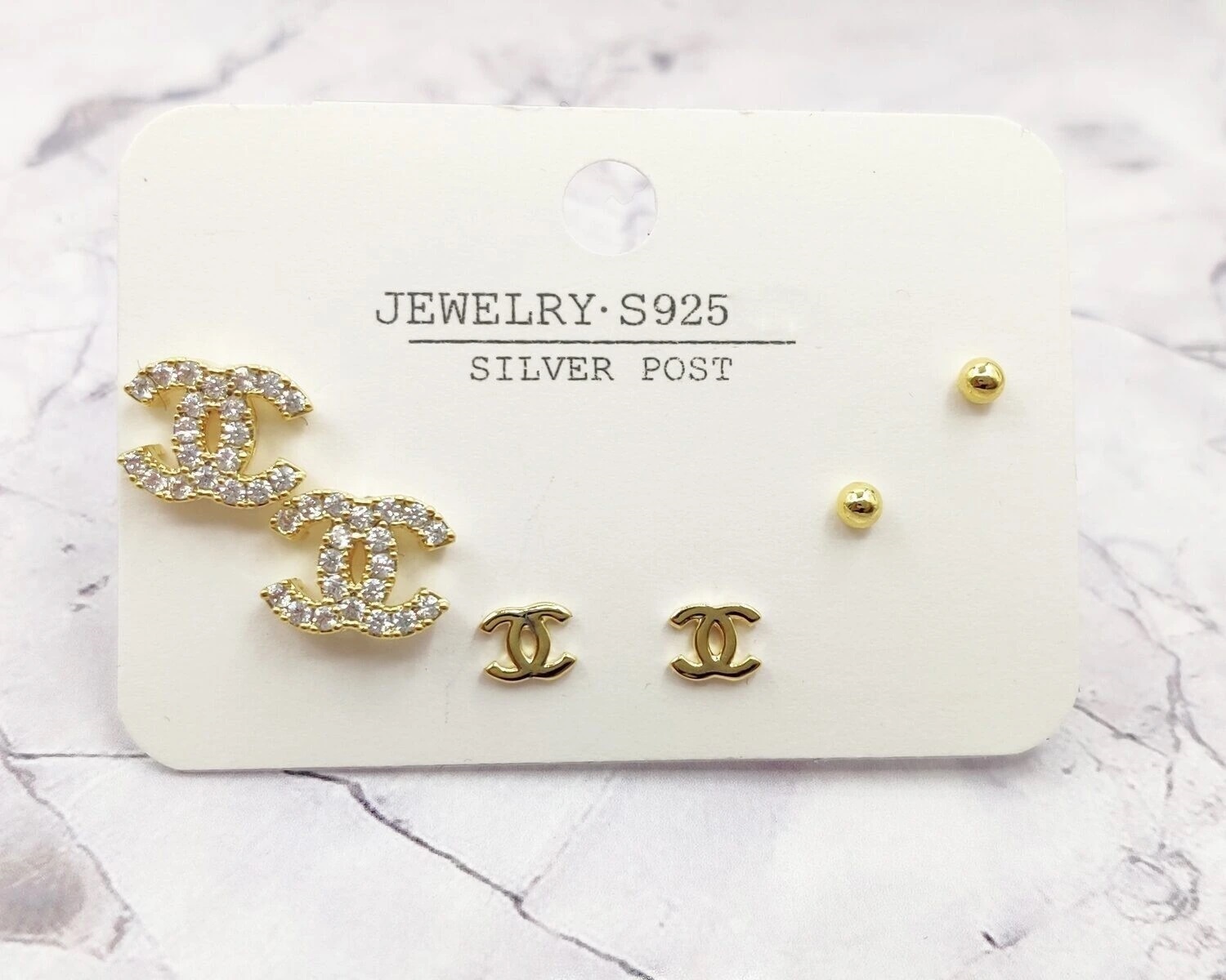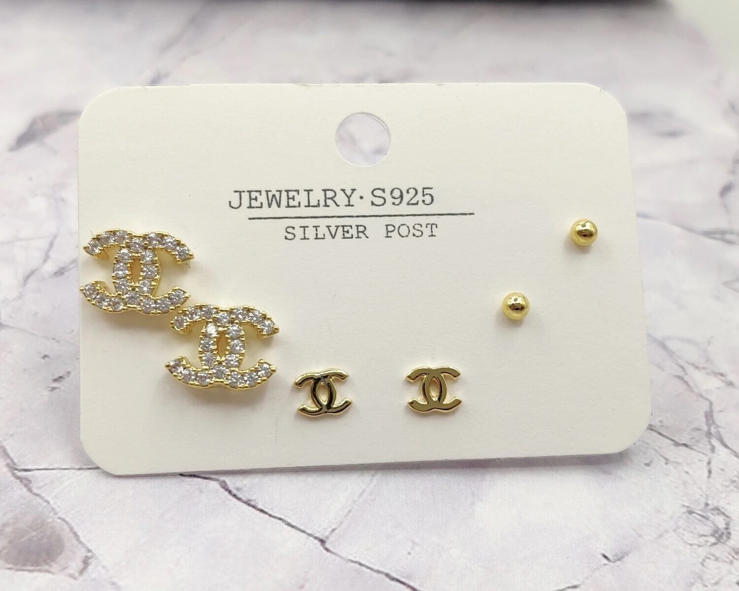 В комплект входят 6 гвоздиков которые можно одевать ассиметрично,на одно ухо, или сочетать между собой в зависимости от Вашего образа.