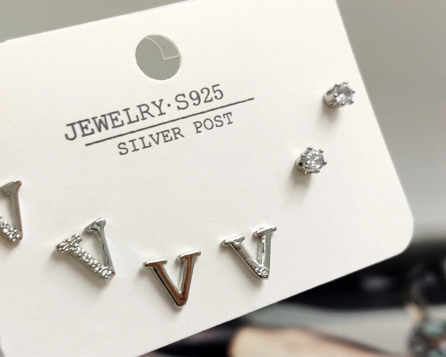 В комплект входят 6 гвоздиков которые можно одевать ассиметрично,на одно ухо, или сочетать между собой в зависимости от Вашего образа.