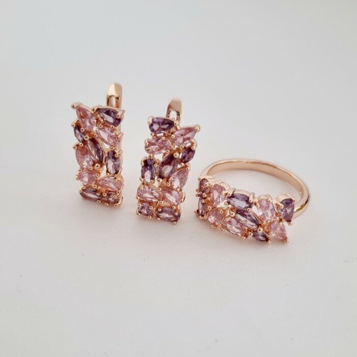 Описание Размер серьги: 2*1 см. Размер кольцо: ширина цветной части 1 см, длина цветной части: 2 см. Замок: английский. Комментарии к товару