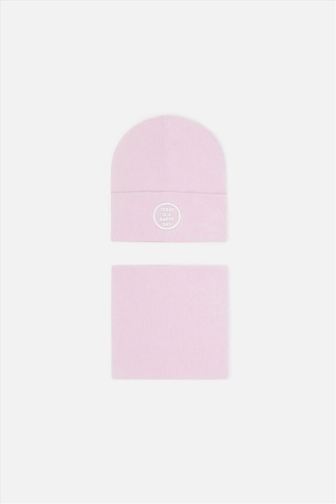 Комплект для девочки: шапка и снуд из хлопкового трикотажа в рубчик с добавлением эластана, окрашенного стойкими гипоаллергенными текстильными красителями. Изделия хорошо тянутся, после многократных стирок сохраняют цвет и форму.