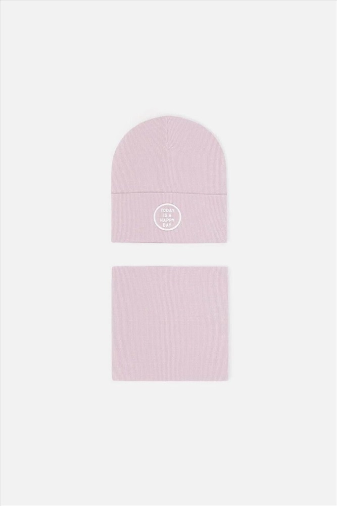Комплект для девочки: шапка и снуд из хлопкового трикотажа в рубчик с добавлением эластана, окрашенного стойкими гипоаллергенными текстильными красителями. Изделия хорошо тянутся, после многократных стирок сохраняют цвет и форму.