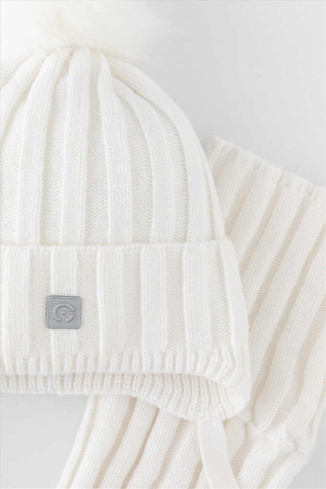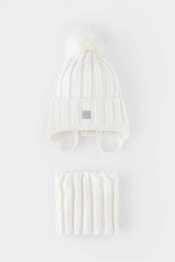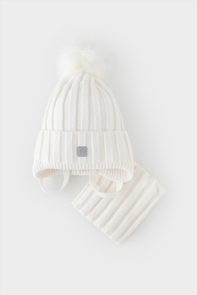 Комплект детский: шапка и снуд из полушерсти. Шапка на завязках с синтепоновым утеплителем. Подклад из натурального хлопка. Полностью закрывает голову, уши и шею, защищая ребёнка от холодного воздуха и ветра. На макушке помпон. Снуд с отворотом. Изделие сохраняет форму и стойкий цвет после многочисленных стирок.
