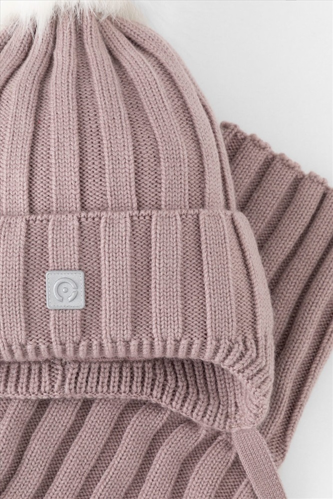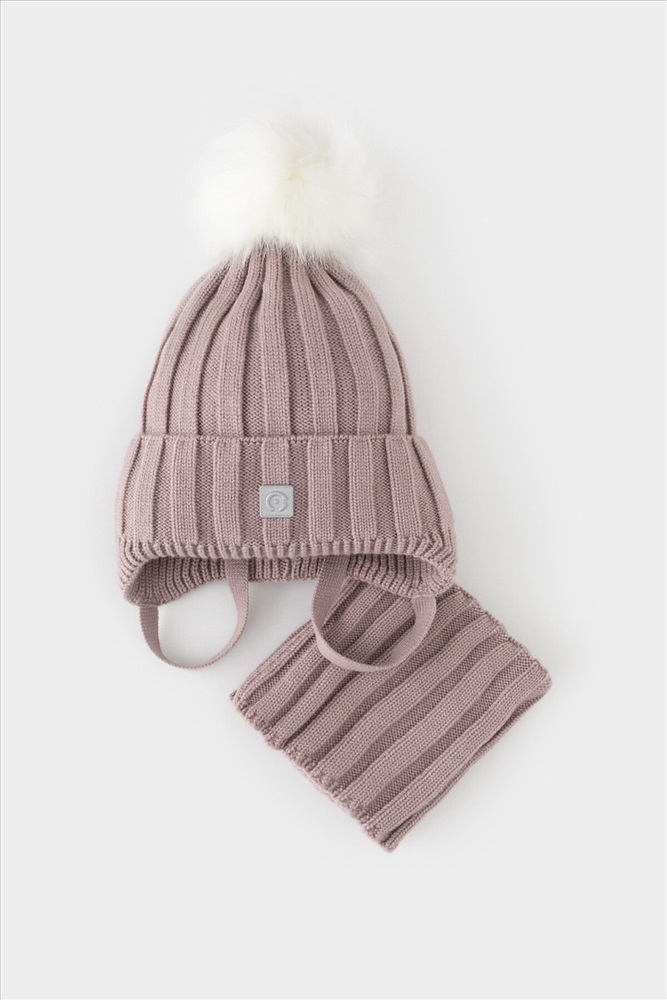 Комплект детский: шапка и снуд из полушерсти. Шапка на завязках с синтепоновым утеплителем. Подклад из натурального хлопка. Полностью закрывает голову, уши и шею, защищая ребёнка от холодного воздуха и ветра. На макушке помпон. Снуд с отворотом. Изделие сохраняет форму и стойкий цвет после многочисленных стирок.