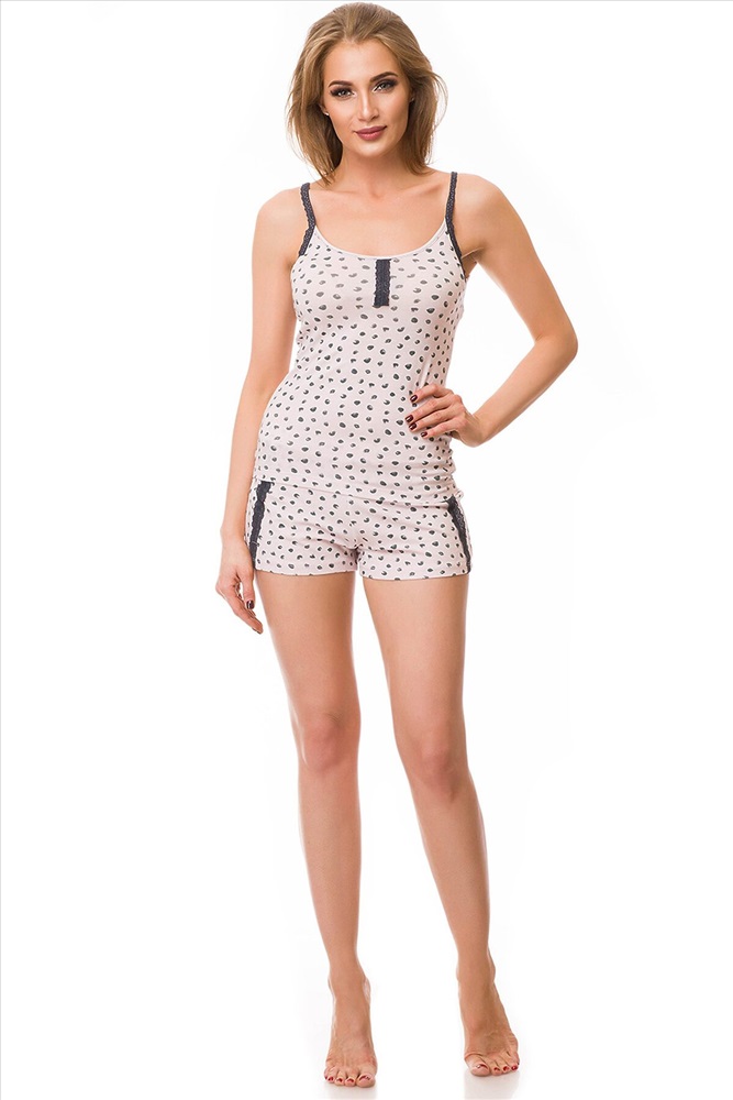 ID товара: 79845 Состав: Хлопок 92%, Эластан 8% Сезон: Весна/Лето Длина: Средняя, Майка 60 см. по спинке, Шорты 28 см. по спинке Фасон: Облегающий Рукав: Без рукава Вид застежки: Нет Декоративные элементы: Кружево Основная ткань: Хлопок Стиль: Базовый Страна бренда: Турция Страна производства: Турция Стильный комплект одежды, выполненный из хлопка с добавлением эластана. Комплект состоит из майки облегающего фасона, с круглым вырезом горловины, на тонких бретелях и аккуратных шортиков с эластичным поясом и средней посадкой. Комплект декорирован кружевными вставками и пестрым принтом. Комментарии к товару