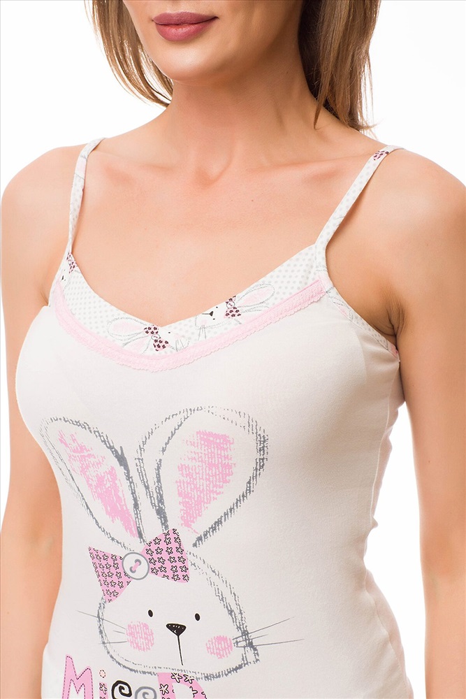 ID товара: 79852 Состав: Хлопок 92%, Эластан 8% Сезон: Весна/Лето Длина: Средняя, Майка 60 см. по спинке, Шорты 30 см. по спинке Фасон: Облегающий Рукав: Без рукава Вид застежки: Нет Основная ткань: Хлопок Стиль: Базовый Страна бренда: Турция Страна производства: Турция Домашний комплект одежды с принтом "зайчики", выполненный из хлопка с добавлением эластана. Комплект состоит из майки облегающего фасона, с V-образным вырезом горловины на тонких бретелях и коротких шортиков с эластичным поясом и средней посадкой. Комментарии к товару
