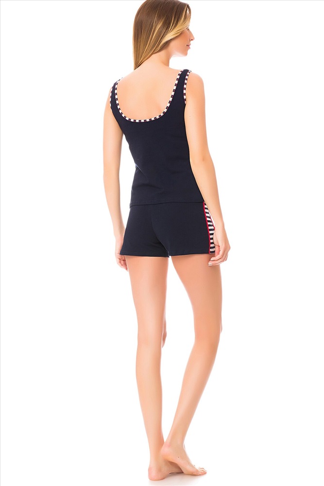 ID товара: 65321 Состав: Хлопок 92%, Лайкра 8% Сезон: Весна/Лето Длина: Средняя, Топ 55 см. по спинке, шорты 5 см. по внутреннему шву Фасон: Облегающий Рукав: Без рукава, 58 см. по внешней стороне Вид застежки: Нет Страна бренда: Турция Страна производства: Турция Комплект из хлопковых шорт и топа с округлым вырезом горловины. Комментарии к товару