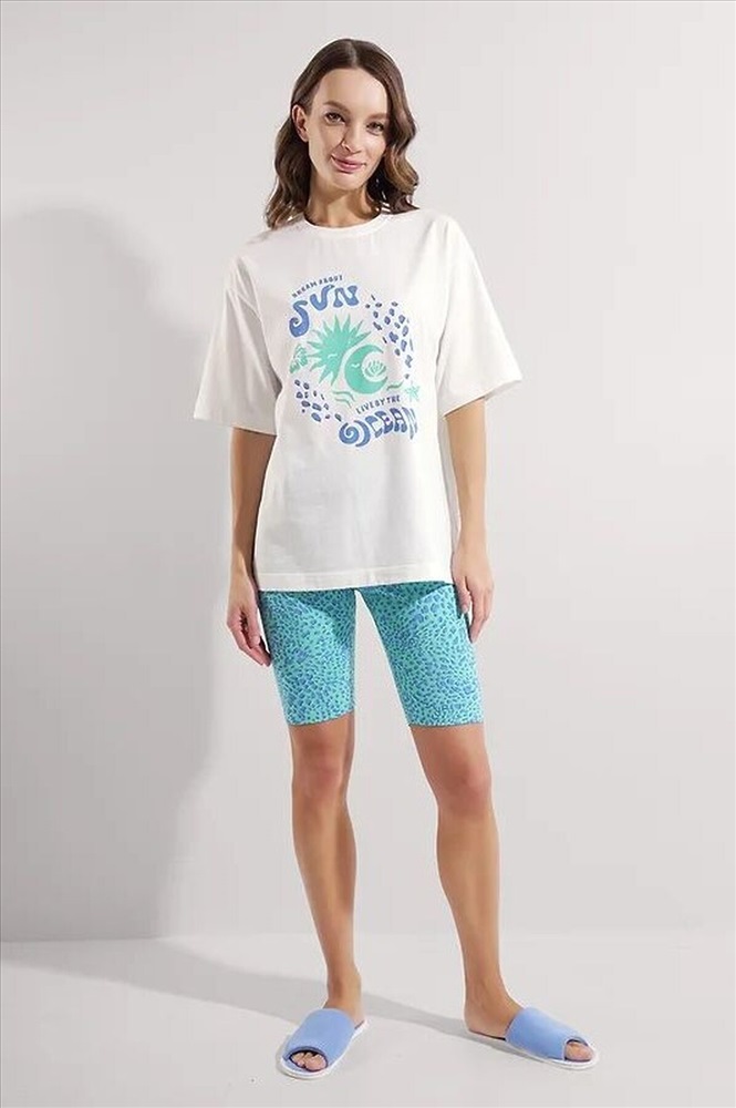 ID товара: 1122572 Состав: 100% Хлопок Сезон: Весна/Лето Длина: Короткая Фасон: Спортивный Рукав: Короткий Крой брючин: Прямой Вырез горловины: Округлый Основная ткань: Хлопок Стиль: Повседневный Страна бренда: Россия Страна производства: Россия Набор одежды для дома и отдыха из трикотажного полотна. Футболка прямого силуэта из трикотажного полотна. Округлая горловина с обтачкой. Короткий втачной рукав. На полочке и спинке принт. Шорты с притачным широким поясом на резинке, принт. Комментарии к товару