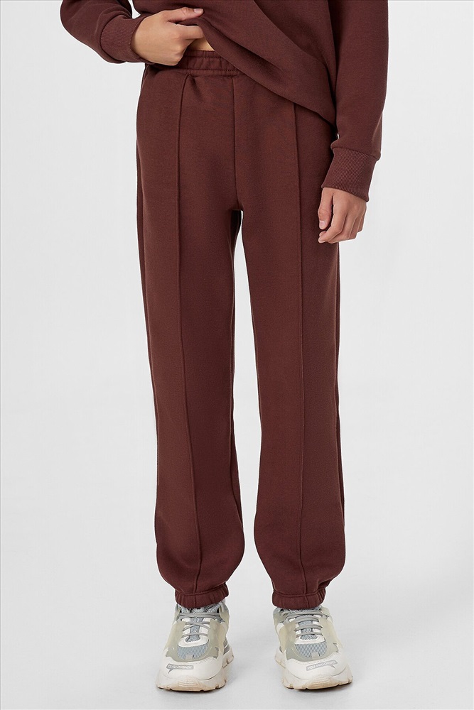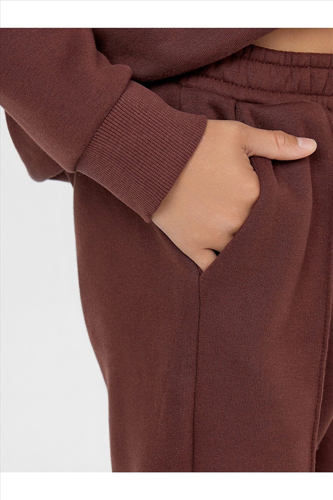 Свитшот прямого кроя с длинными рукавами и спущенной линией плеча позволяет свободно двигаться. Круглая горловина с аккуратной окантовкой и эластичные манжеты создают удобную посадку. Брюки-джогеры с боковыми карманами и декоративной строчкой выглядят современно и стильно. Широкий пояс с внутренней резинкой и мягкая обработка низа обеспечивают комфорт при любой активности.