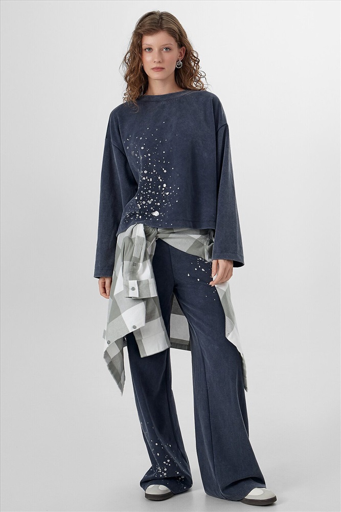 ID товара: 1212747 Состав: 52% Полиэстер; 43% Хлопок; 5% Эластан Сезон: Демисезон Длина: Полная Фасон: Свободный Рукав: длинные Вид застежки: Без застежки Крой брючин: Широкий Тип карманов: В шве Декоративные элементы: Без элементов Утеплитель: Без утепления Основная ткань: Полиэстер Стиль: Повседневный Уход: Деликатная стирка при 30 градусах Модель брюк: Прямые Фактура материала: Интерлок Страна бренда: Беларусь Страна производства: Беларусь Комплект состоит из свитшота (122866) и брюк (182562). Свитшот прямой, свободный, укороченный. Горловина круглой формы обработана обтачками из основного полотна. Рукава втачные, длинные, широкие.Нижние срезы свитшота и рукавов обработаны швом вподгибку. Брюки женские выполнены из трикотажного полотна интерлок. Брюки прямые, свободные. Посадка средняя, сидение опущено. Пояс цельнокроеный с эластичной тесьмой внутри (внутр. 30мм 30RV). В боковых швах обработаны карманы. Подкладка кармана из основного полотна. Нижние срезы обработаны швом вподгибку. Комментарии к товару
