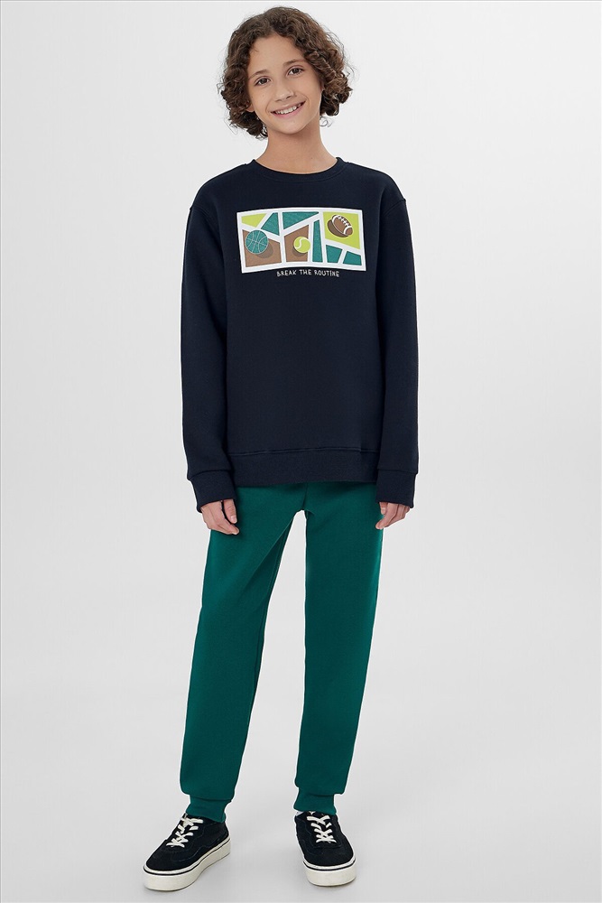 ID товара: 1220510 Состав: 65% Хлопок; 35% полиэстер Сезон: Осень/Зима Длина: Полная Фасон: Прямой Рукав: длинные Вид застежки: Без застежки Крой брючин: Прямой Рисунок: Фантазийный Тип карманов: В шве Декоративные элементы: Принт Утеплитель: Начес Основная ткань: Хлопок Стиль: Спортивный Уход: Деликатная стирка при 30 градусах Модель брюк: Свободный Фактура материала: Футер с подчесом Страна бренда: Беларусь Страна производства: Беларусь Комплект состоит из джемпера и брюк. Джемпер свободного, прямого силуэта. Длина до середины ягодиц. Перед и спинка цельнокроеные. Горловина круглой формы, обработана обтачкой из рибаны. Шов втачивания обтачки распошит. Рукава длинные, втачные. Шов втачивания рукава отстрочен. По низу рукавов притачные манжеты из рибаны. По низу джемпера притачивается пояс из рибаны. Шов притачивания пояса отстрочен. Брюки свободного силуэта. Пояс отрезной из рибаны с резиной внутри, по поясу проложены 2 отделочные строчки, по центру пробиты петли для шнура. Шнур кругловязаный, концы шнура застрочены. Карманы в боковых швах. Комментарии к товару