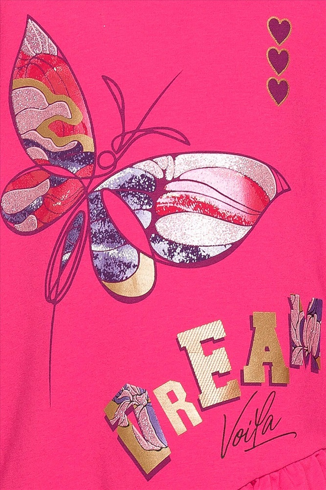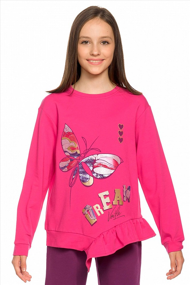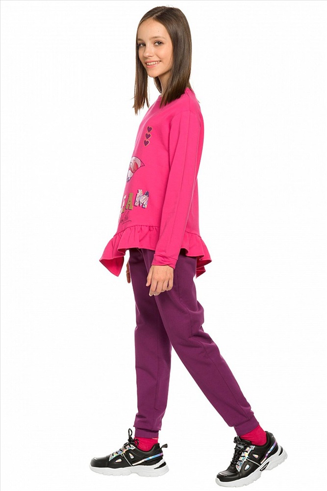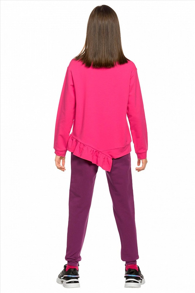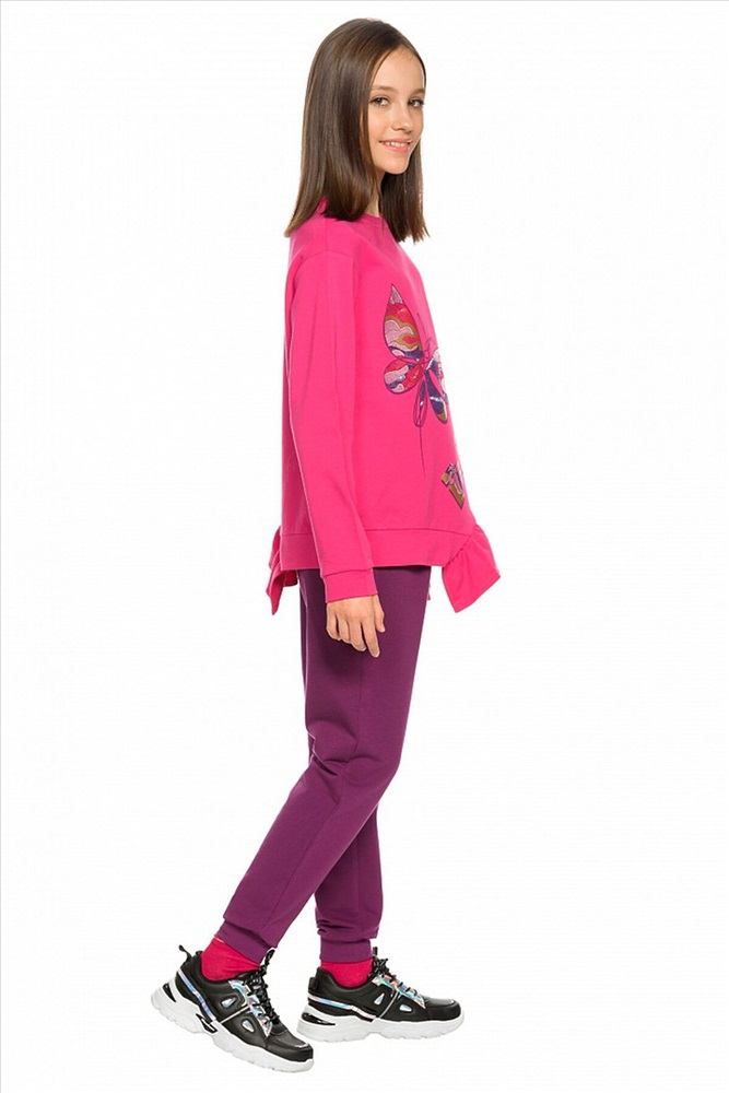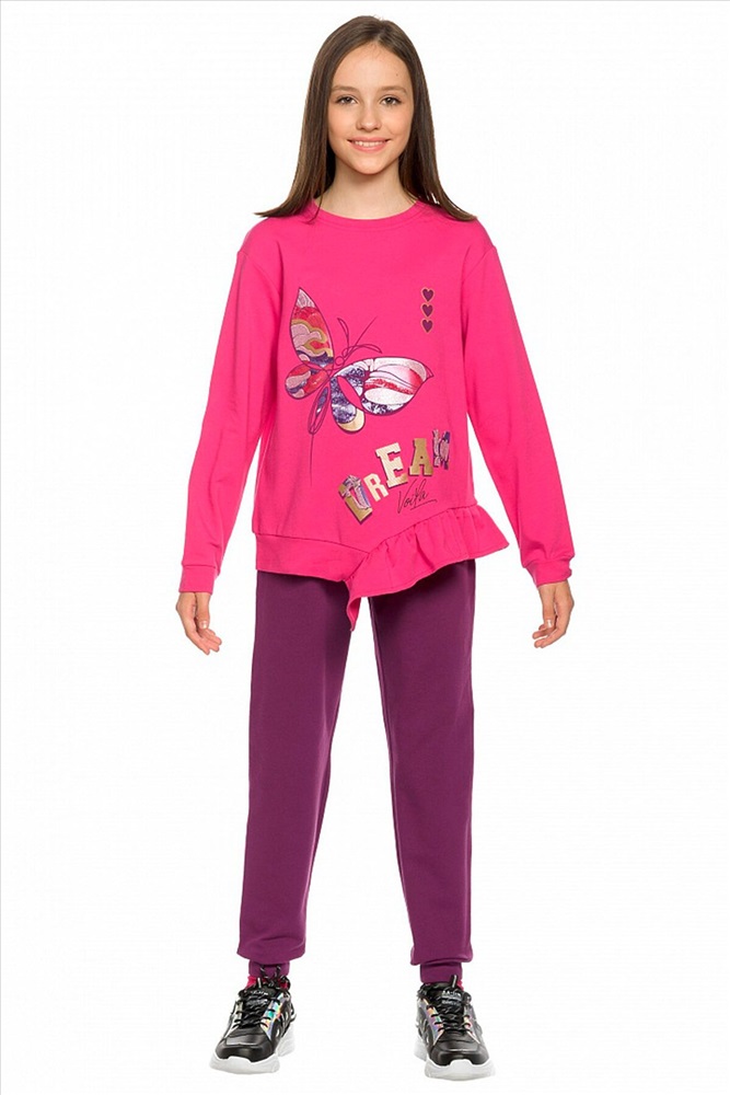 ID товара: 685663 Состав: Верх- 96% Хлопок, 4% Эластан, Низ- 96% Хлопок, 4% Эластан Сезон: Осень/Зима Длина: Средняя Фасон: Повседневный Рукав: Длинные Вид застежки: Шнурок Рисунок: Надпись Декоративные элементы: Печатный принт Основная ткань: Хлопок Стиль: Повседневный Страна бренда: Россия Страна производства: Китай Комплект из футера для девочек свитшот и брюки. Свитшот расслабленного силуэта. Rubber принт с золотым металликом и глиттером. Надпись Мечта. Вуаля. По низу изделия декоративный, асимметрично расположенный волан из основной ткани. Брюки на манжете из рибаны увеличенного, актуального объема без защипов. Пояс из основной ткани с эластиком внутри и дополнительной регулировкой объема шнурком. Комментарии к товару