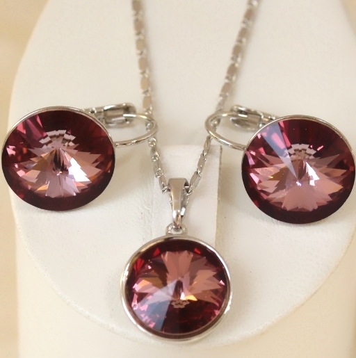 Комплект с покрытием родий. Материал: бижутерный сплав. Покрытие: родий. Вставка: австрийские кристаллы. Размер камня: серьги -1,4 см. Кулон - 1,2 см. Цвет камня: коричневый. Длина цепочки: 40-45 см.