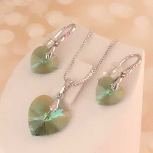 Комплект с покрытием родий. Материал: бижутерный сплав. Покрытие: родий. Вставка: австрийские кристаллы. Размер камня: серьги -1 см. Кулон - 1,5 см. Цвет камня: зеленый. Длина цепочки: 45-50 см.