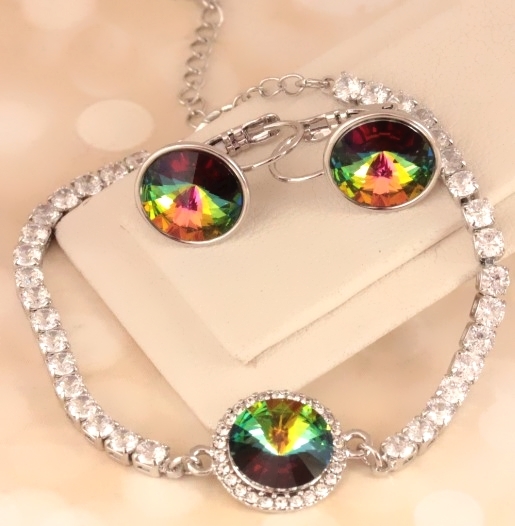 Размер камня: серьги - 1,1 см (с ободком), браслет - 1,3 см. (с ободком)