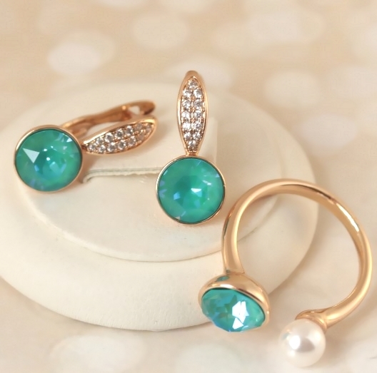 Размер камня: серьги-0,9 см. кольцо-0,9 см