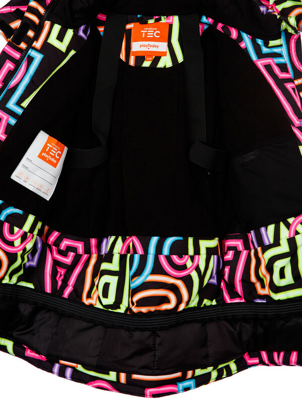 Мембранный материал делает этот яркий и модный комбинезон непромокаемым: мембрана не пропускает влагу снаружи, но выводит её изнутри, что крайне важно во время подвижных игр и занятий спортом.
