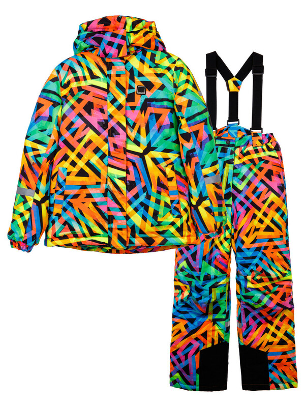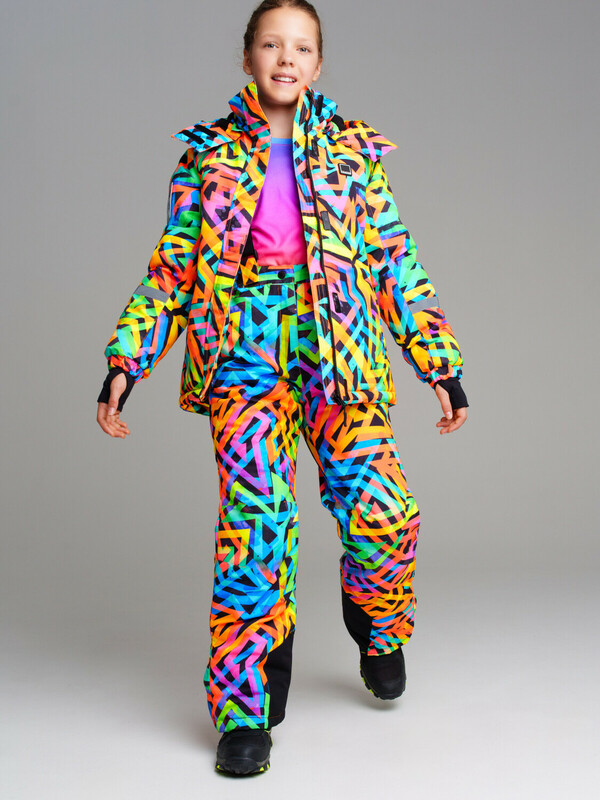 Утеплитель 200 г/м; боковые карманы на липучке; съемный капюшон с адаптацией по ширине резинкой; внешняя ветрозащитная планка на липучках; эргономичные рукава; внутренние лямки для снятия в помещении; внутренний карман; снегозащитная юбка с резинкой Snow stopper; Брюки: Утеплитель 160 г/м; карманы; снегозащитный манжет на брюках с резинкой Snow stopper; регулировка длины брюк; регулировка ширины брюк липучкой; усиление по внутреннему шву; Резинка по талии; съемные бретели; Утепленный горнолыжный комплект - идеальный выбор для активного отдыха на свежем воздухе в зимний период. Инновационный утеплитель и флисовая подкладка сохраняют тепло морозную погоду. Мембранный материал делает этот яркий и модный комбинезон непромокаемым: мембрана не пропускает влагу снаружи, но выводит её изнутри, что крайне важно во время подвижных игр и занятий спортом. Легкий, теплый и удобный, комплект идеально подходит для спорта, лыж, сноуборда и игр на свежем воздухе в холодный период года: зима, поздняя осень и ранняя весна. *Пожалуйста, обратите внимание, что указанный температурный режим является приблизительным и зависит от многих факторов, таких как возраст, физическое состояние, уровень активности ребенка и количество слоев одежды. Время, проведенное на открытом воздухе, и погодные условия, такие как холодный ветер, могут повлиять на тепловые характеристики изделия. Убедитесь, что защищены от холода голова, руки и ноги. Комментарии к товару