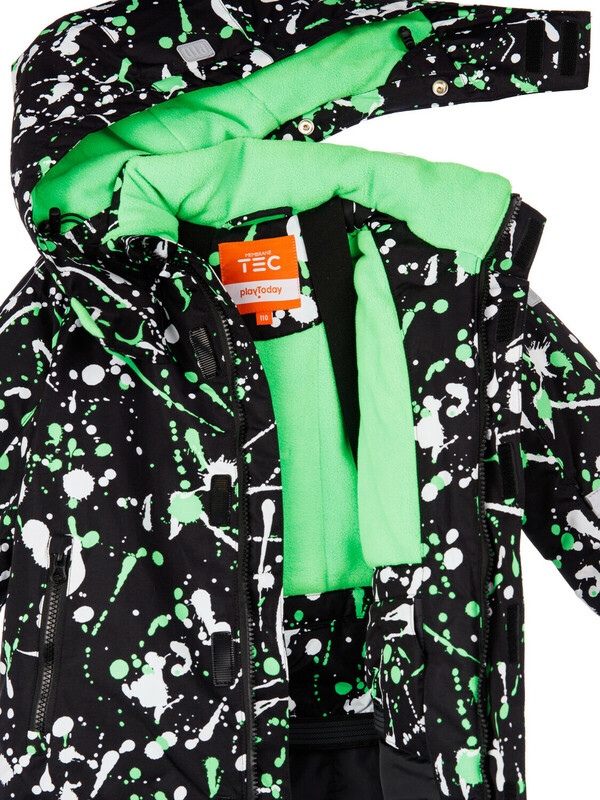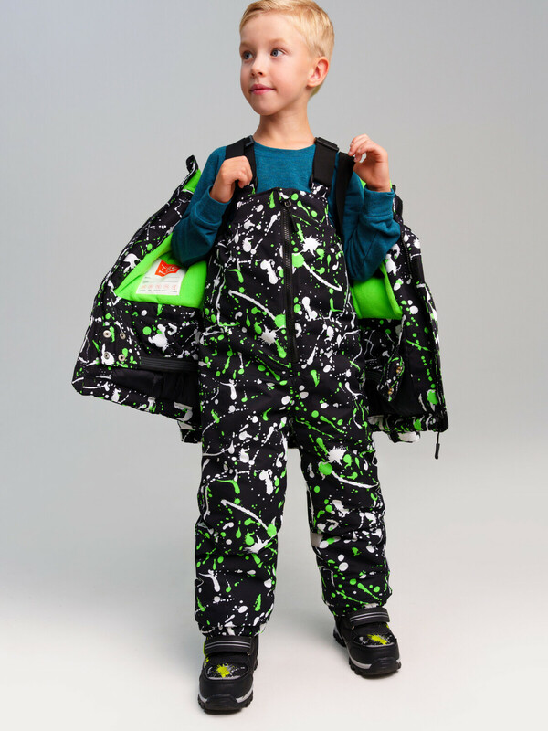 Утеплитель 250 г/м; боковые карманы на молнии; съемный капюшон с утяжкой по ширине резинкой со стопперами; защита подбородка при застегивании молнии; внешняя ветрозащитная планка на липучках; эргономичные рукава; на рукаве карман для скипаса; регулировка ширины рукава липучкой; внутренние лямки для снятия в помещении; снегозащитная юбка с резинкой Snow stopper; Полукомбинезон: Утеплитель 180 г/м подкладка - флис; низ брючины на резинке; резинка по спинке; штрипки; Утепленный горнолыжный комплект - идеальный выбор для активного отдыха на свежем воздухе в зимний период. Инновационный утеплитель и флисовая подкладка сохраняют тепло морозную погоду. Мембранный материал делает этот яркий и модный комбинезон непромокаемым: мембрана не пропускает влагу снаружи, но выводит её изнутри, что крайне важно во время подвижных игр и занятий спортом. Легкий, теплый и удобный, комплект идеально подходит для спорта, лыж, сноуборда и игр на свежем воздухе в холодный период года: зима, поздняя осень и ранняя весна. *Пожалуйста, обратите внимание, что указанный температурный режим является приблизительным и зависит от многих факторов, таких как возраст, физическое состояние, уровень активности ребенка и количество слоев одежды. Время, проведенное на открытом воздухе, и погодные условия, такие как холодный ветер, могут повлиять на тепловые характеристики изделия. Убедитесь, что защищены от холода голова, руки и ноги. Комментарии к товару